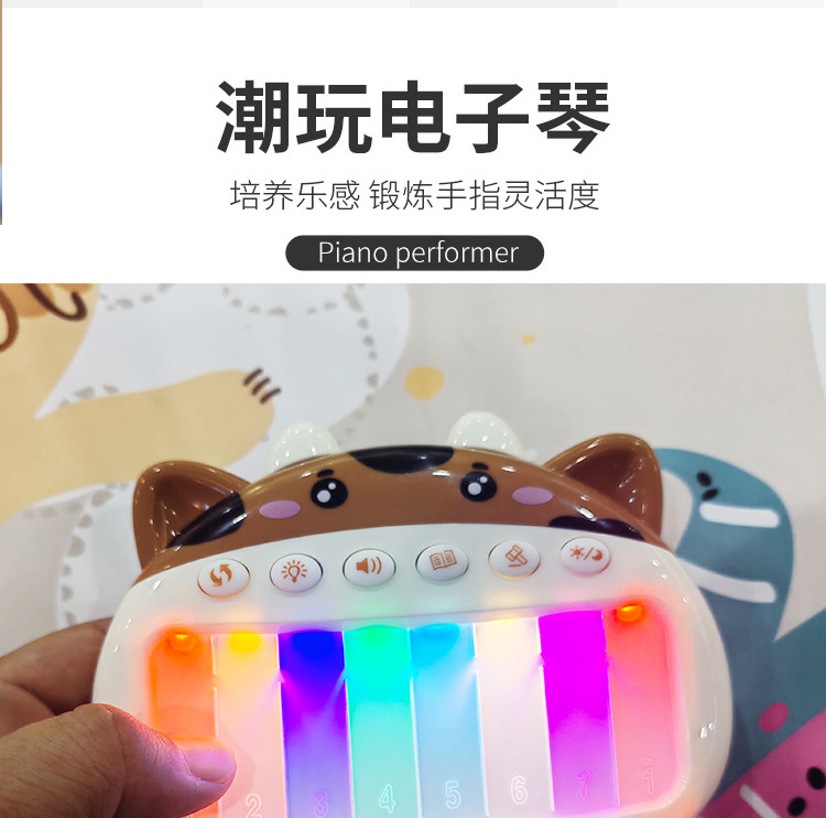• 만화 동물 다기능 터치 컬러 스크린 전자 키보드 (주황색 고양이)