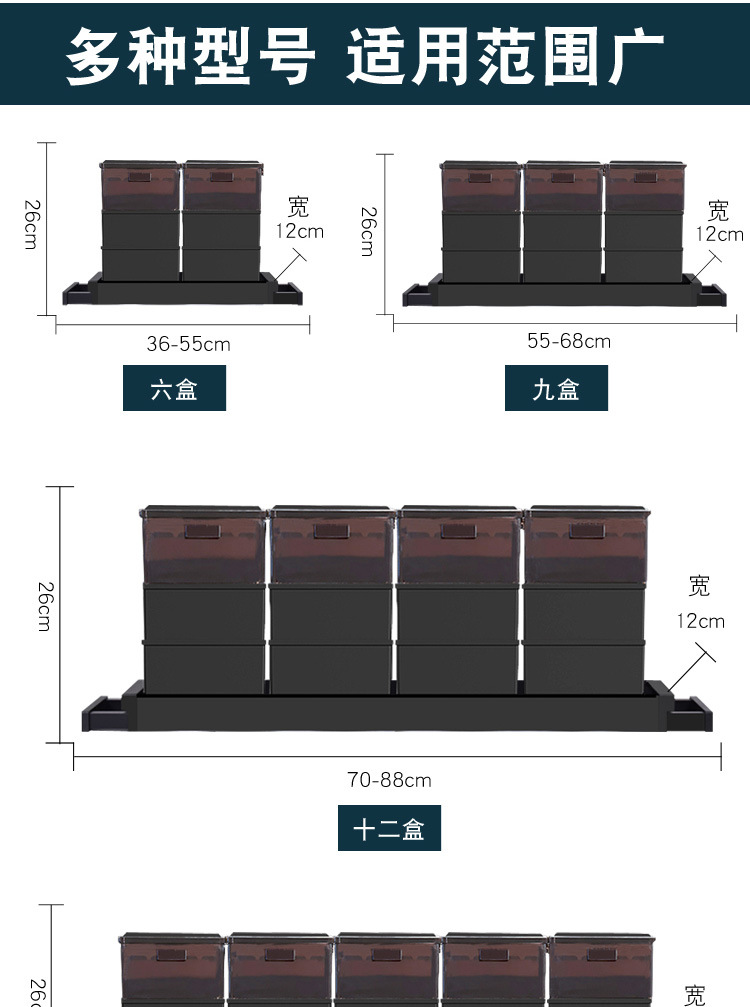 • **알루미늄 합금 하단 선반 트리클 박스 상단 서랍 12개 투명**