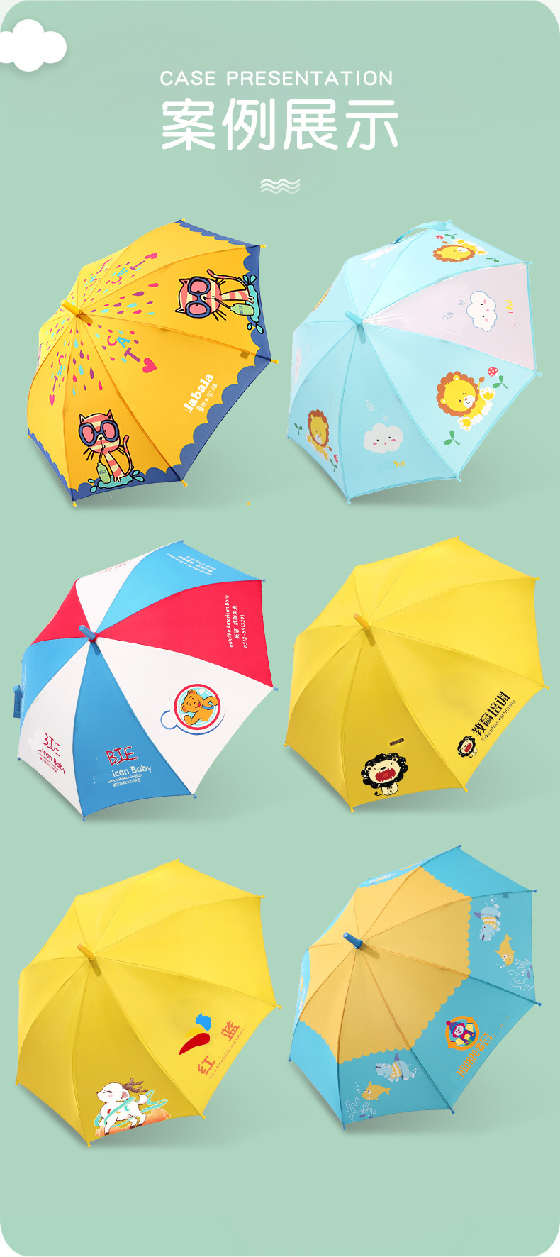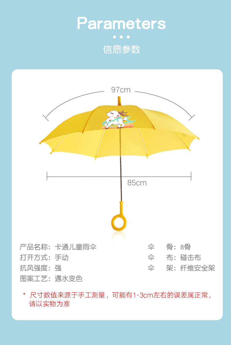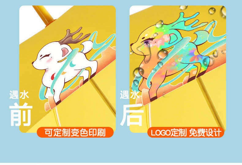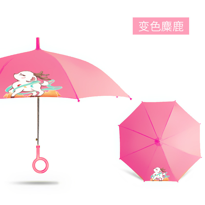 어린이 우산 맞춤형 로고 창조적 인 만화 패턴 직선 우산 유치원 학생 긴 손잡이 우산 물에 노출되면 색상이 변합니다.스토어 가기
