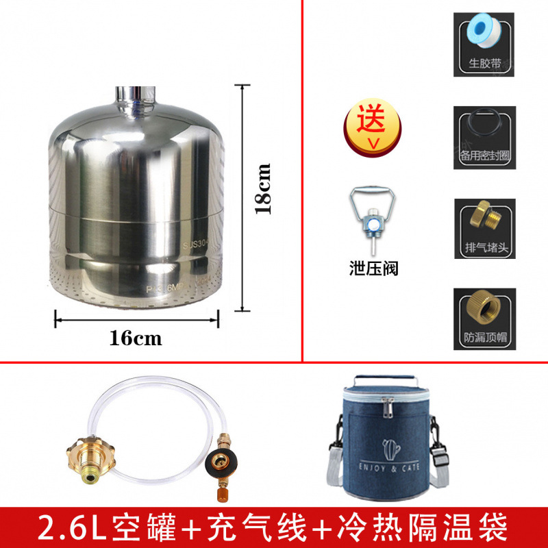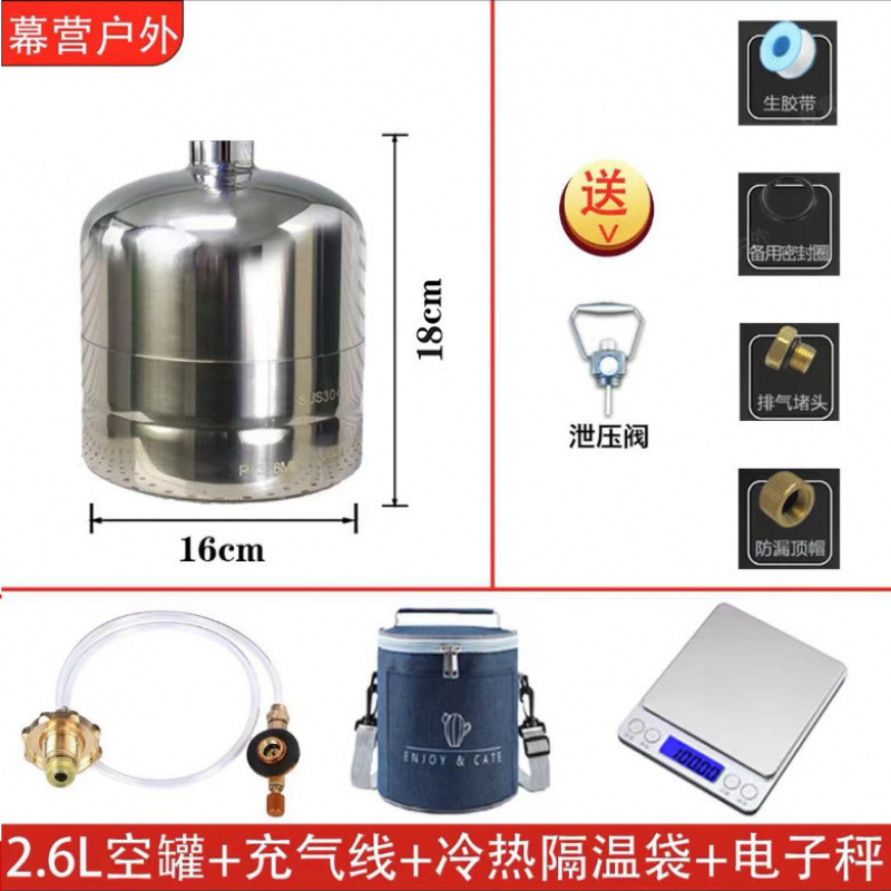 • 2.6L 두꺼운 스테인레스 스틸 재충전 가능 탱크 + 인플레이션 라인 + 절연 백 + 전자 저울 [