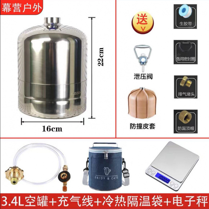 • 3.4L 두꺼운 스테인레스 스틸 재충전 가능 탱크 + 인플레이션 라인 + 단열 백 + 전자 저울 [
