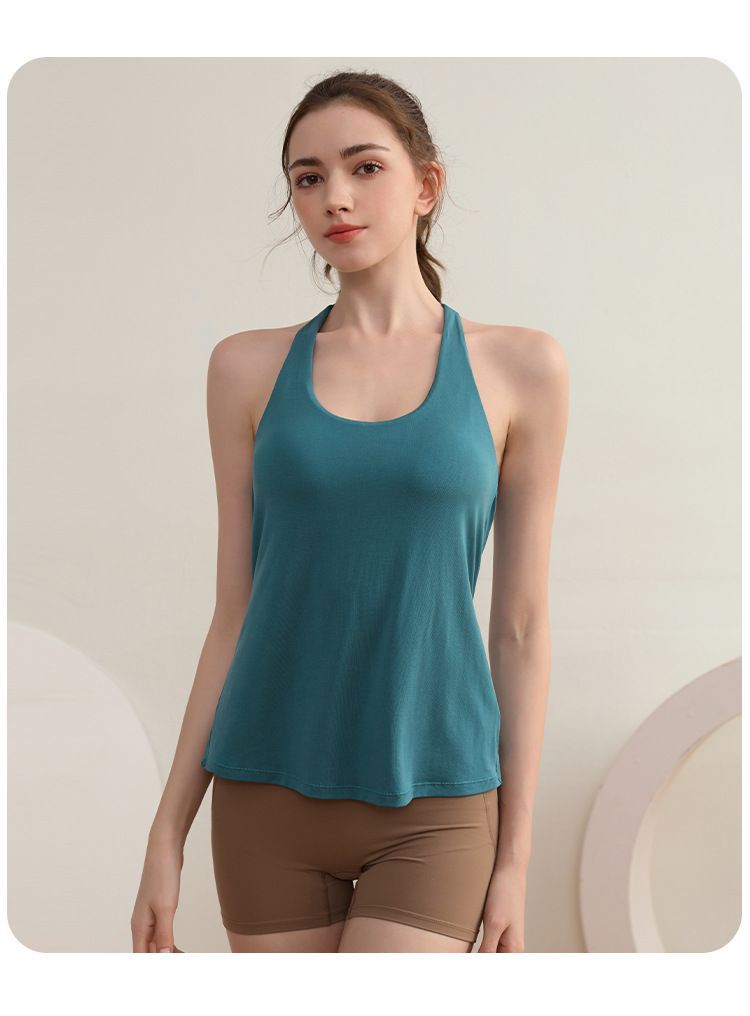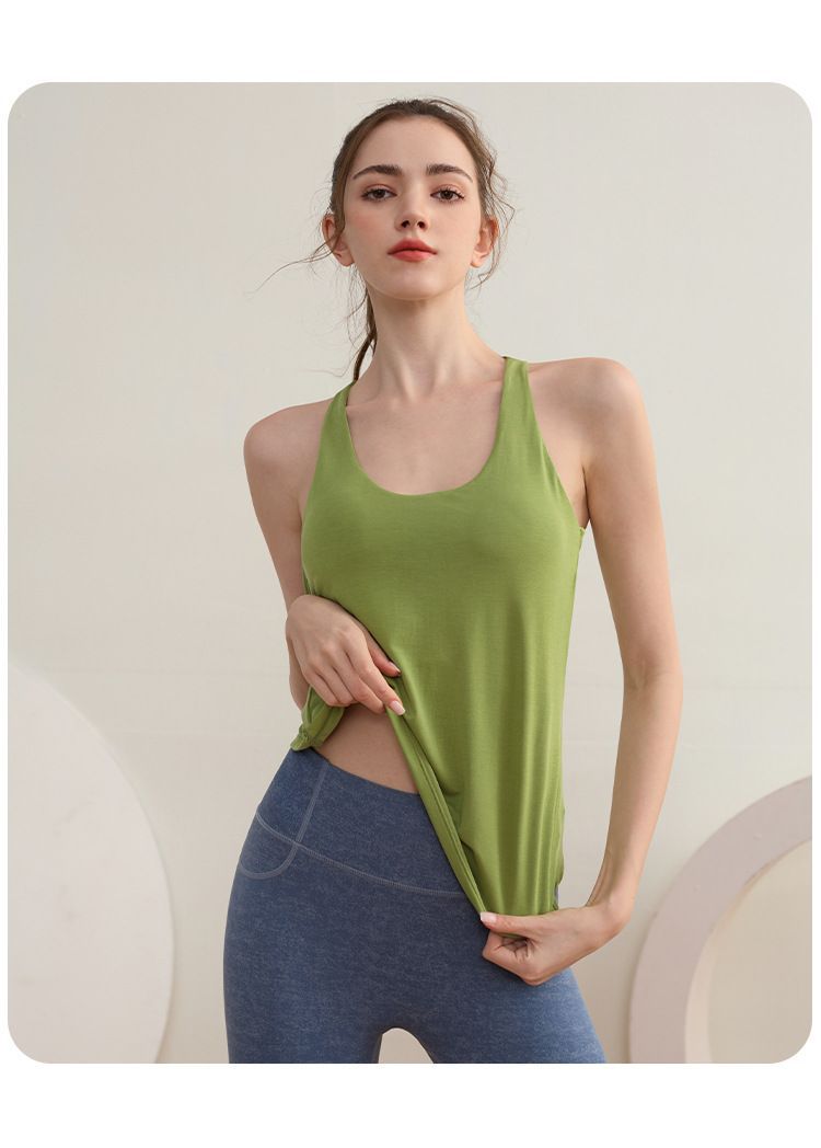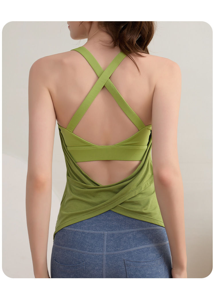 가슴 패드가 있는 여성용 페이크 투피스 피트니스 조끼, 스포츠 탑, 크로스백 요가복, 민소매 티셔츠스토어 가기