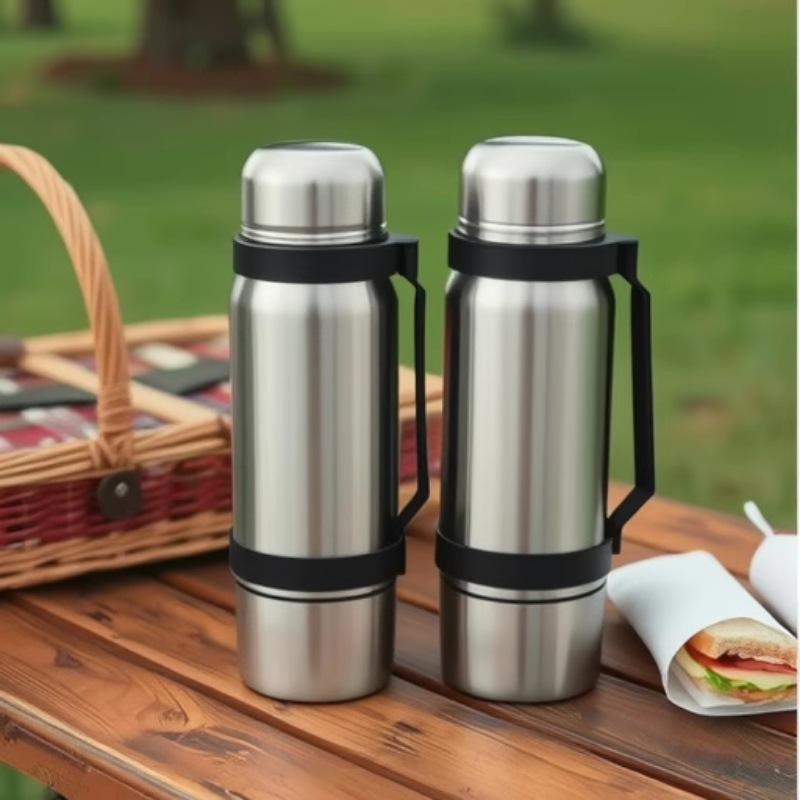 공장 직접 공급 대용량 진공 절연 냄비 여행 냄비 스테인레스 스틸 진공 손잡이가있는 야외 휴대용 등산 냄비