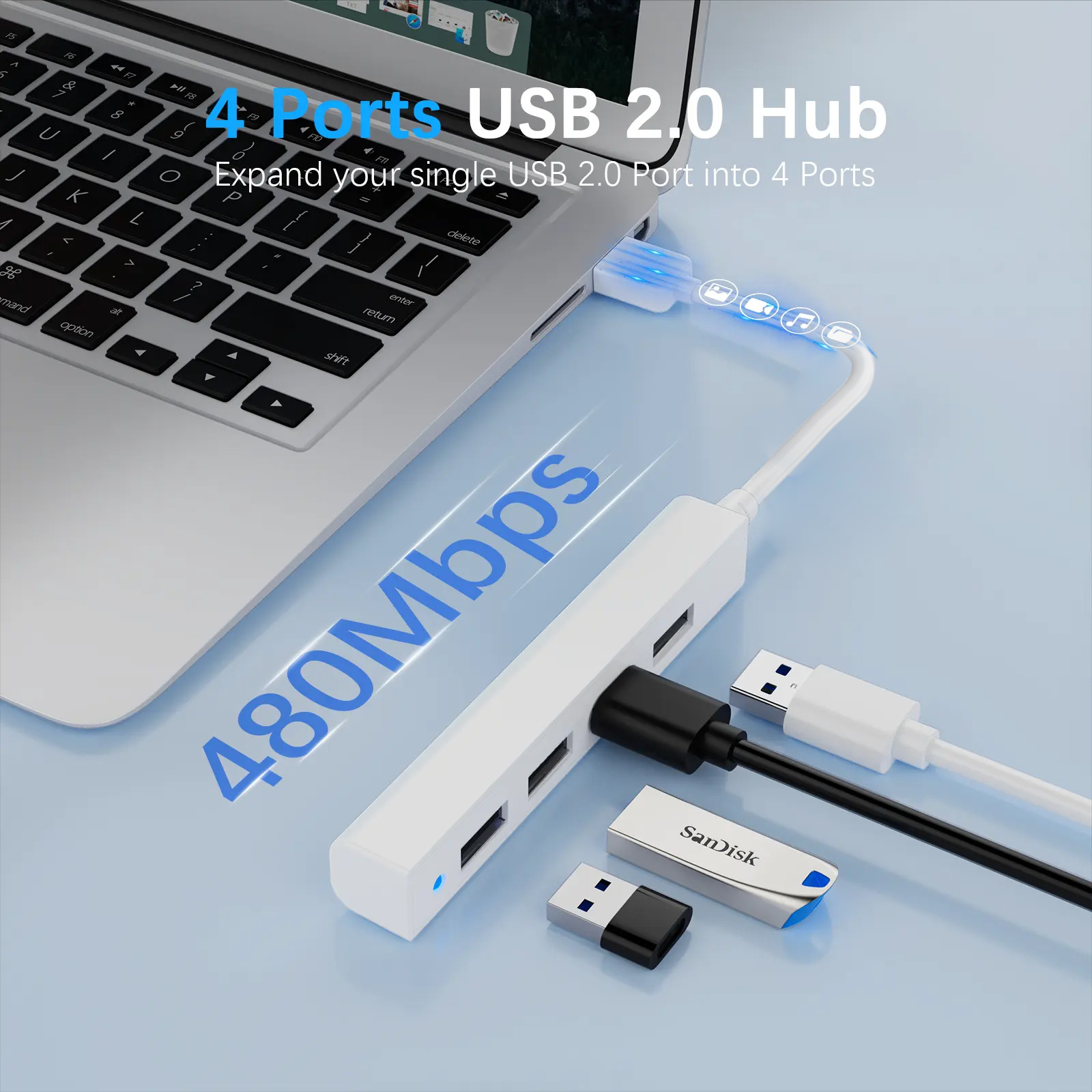 1 ~ 4 개의 USB2.0 확장 도크 컴퓨터 노트북 멀티 인터페이스 확장 HUB LED 플러그 및 플레이 드라이버 프리