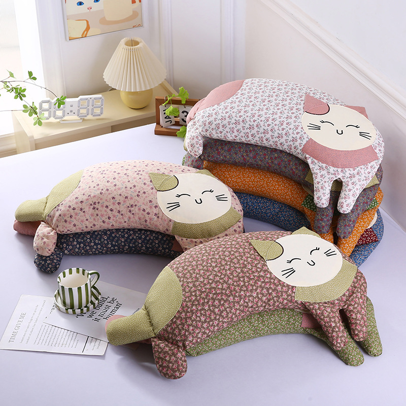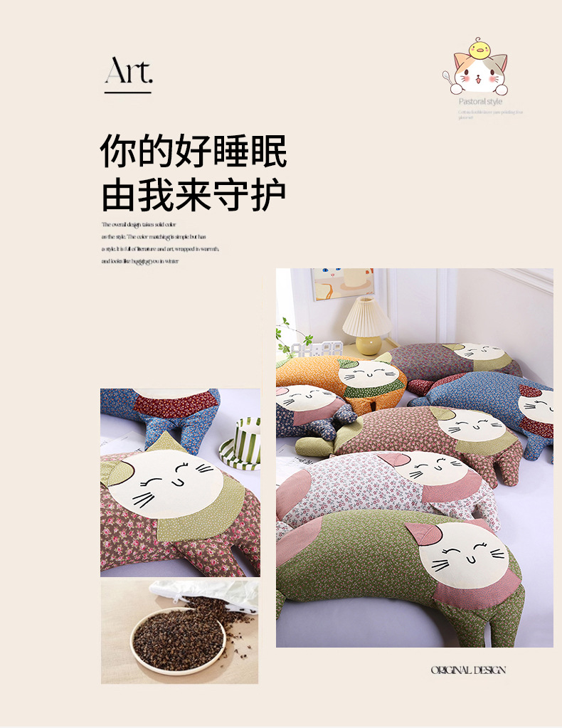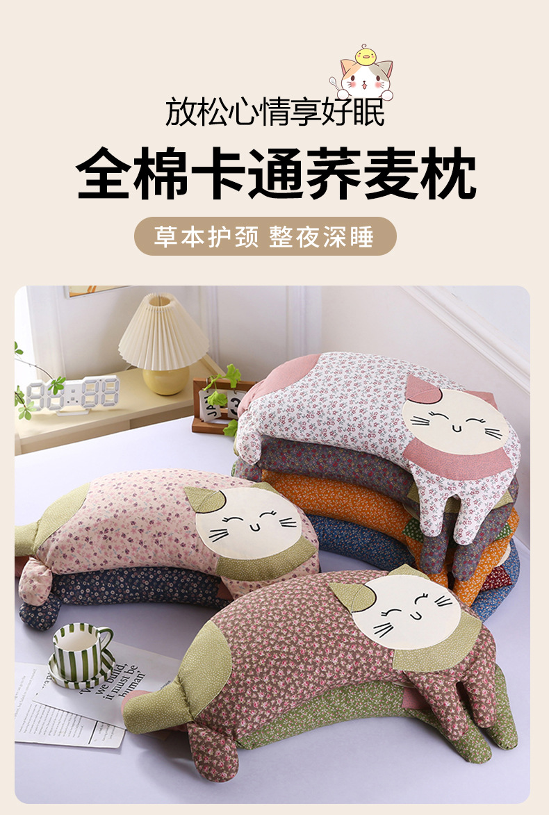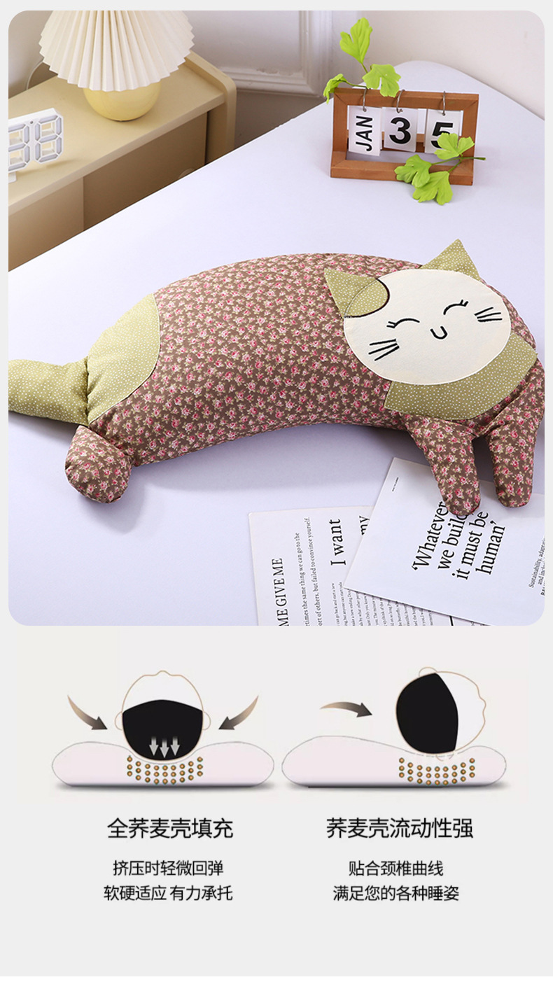 2025년 신형 귀여운 목 보호 고양이-순면 만화 메밀 목베개 어린이 학생 성인용 베개스토어 가기