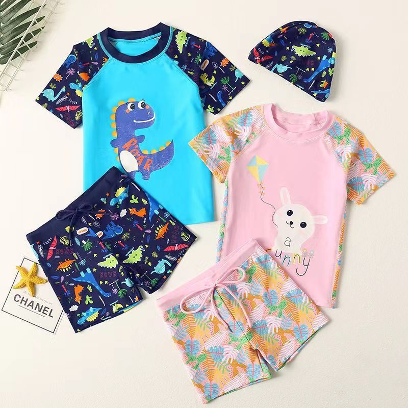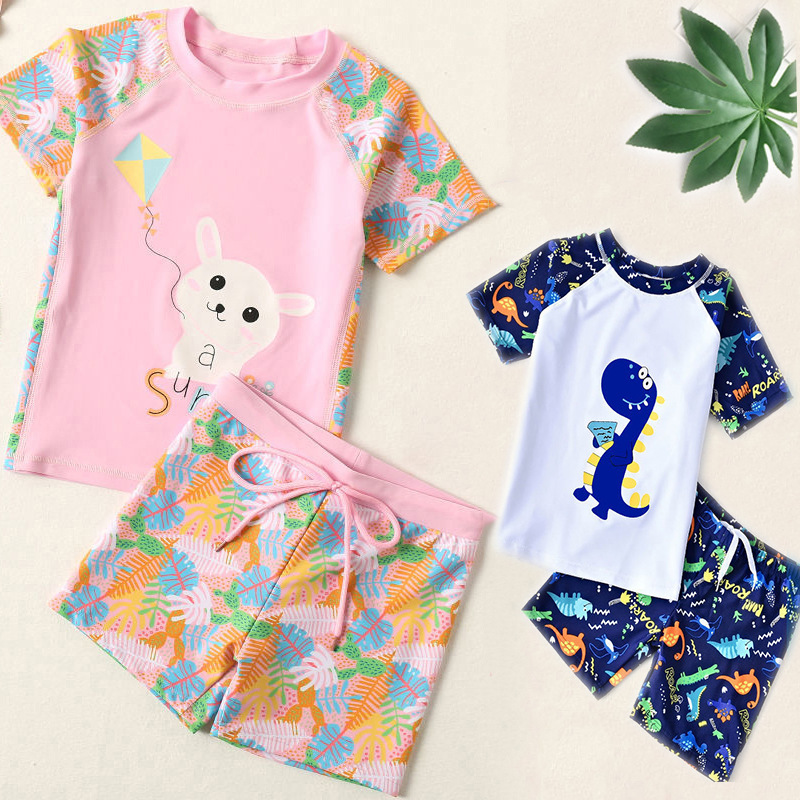 어린이 수영복 소년 소녀 분할 수영복 수영 트렁크 세트 어린이 여름 빠른 건조 반팔 제조 업체 도매스토어 가기