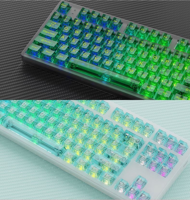 에메랄드 아이스 크리스탈 고투명 키캡, 매우 투명한 기계식 범용 61/68/87/98/99/104 키보드스토어 가기