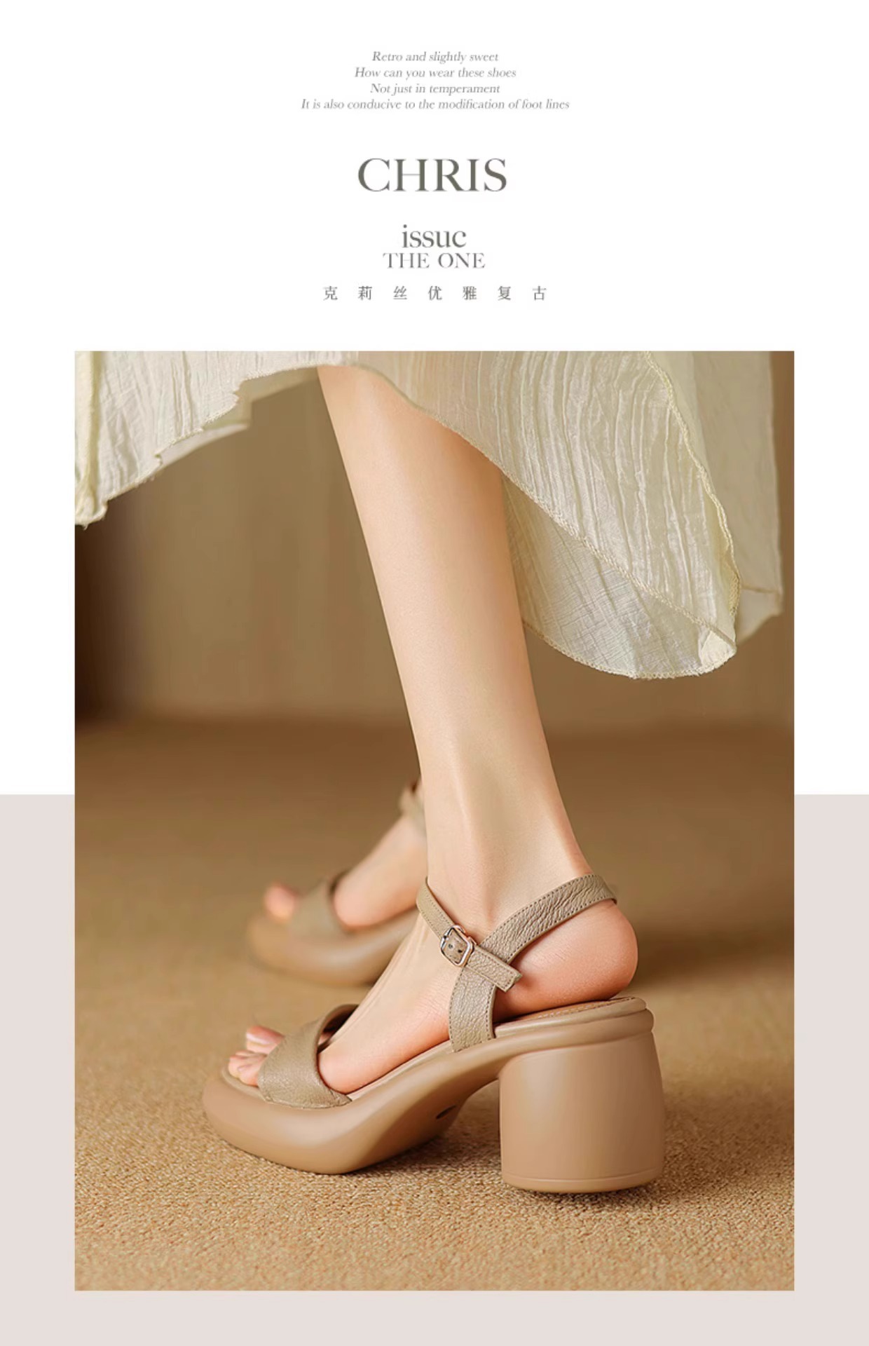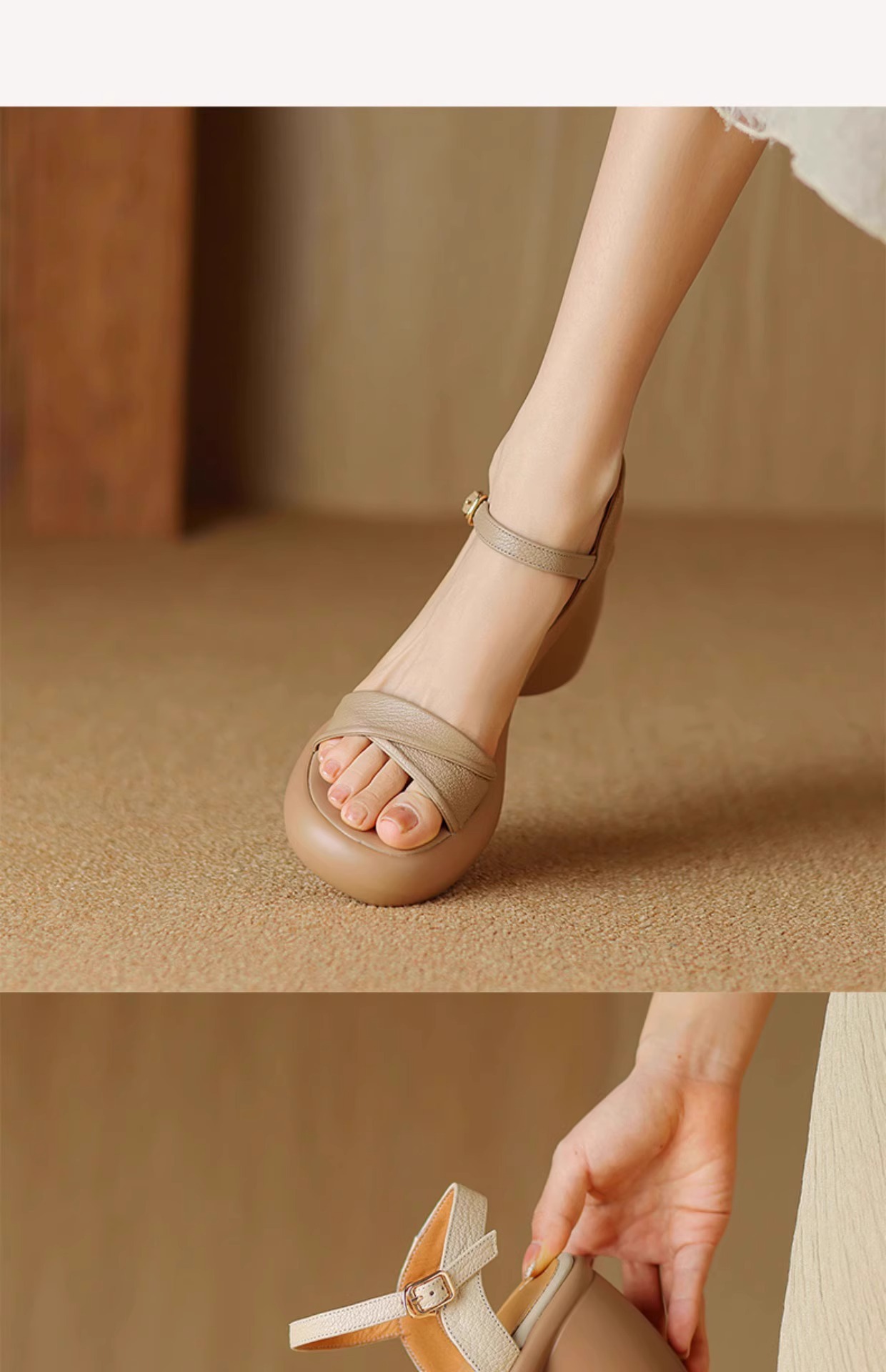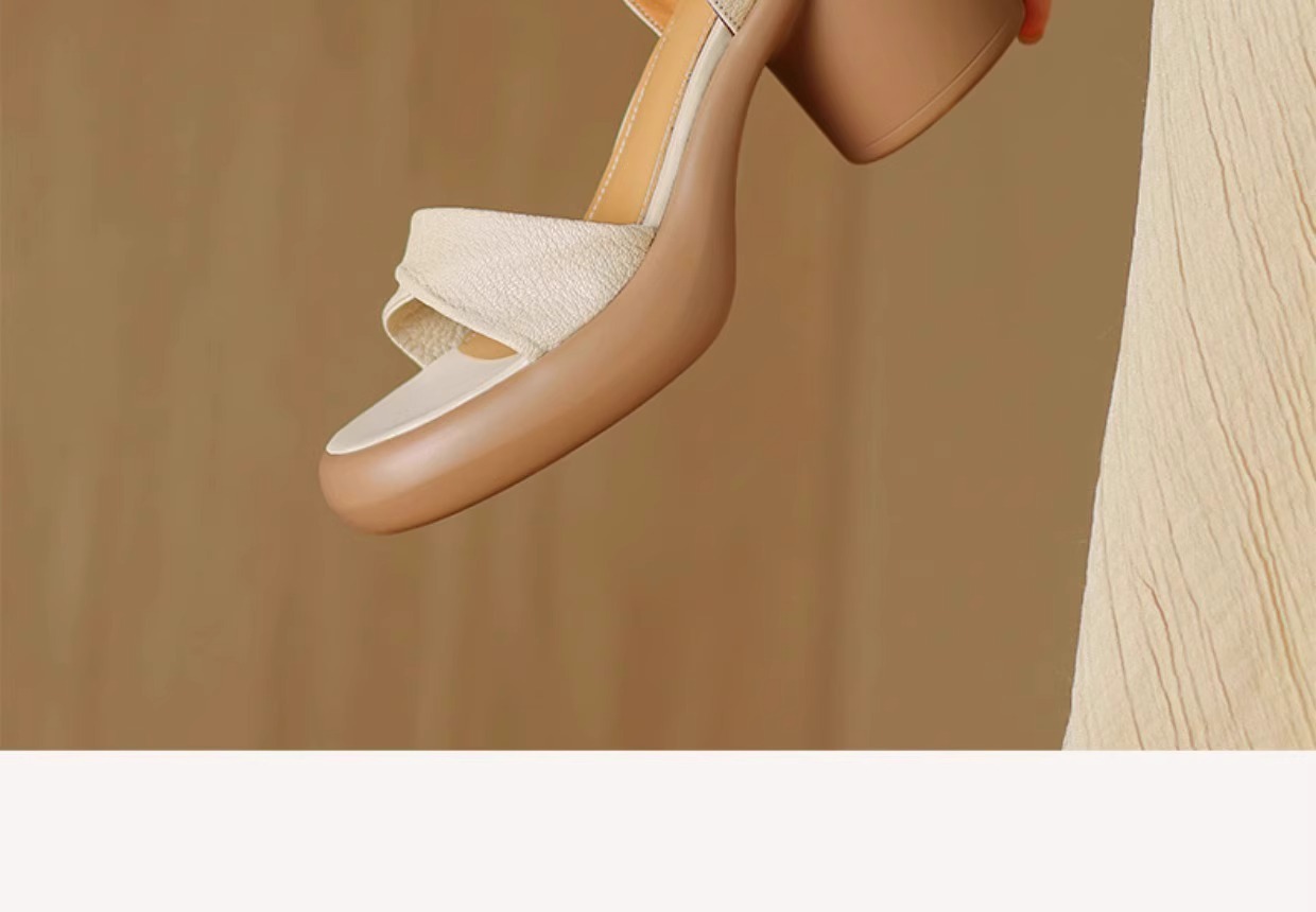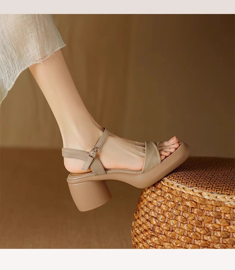 정품 가죽 두꺼운 하이힐 샌들 여성의 2025 년 새로운 여름 원피스 피곤하지 않은 발 두꺼운 여름 로마 샌들