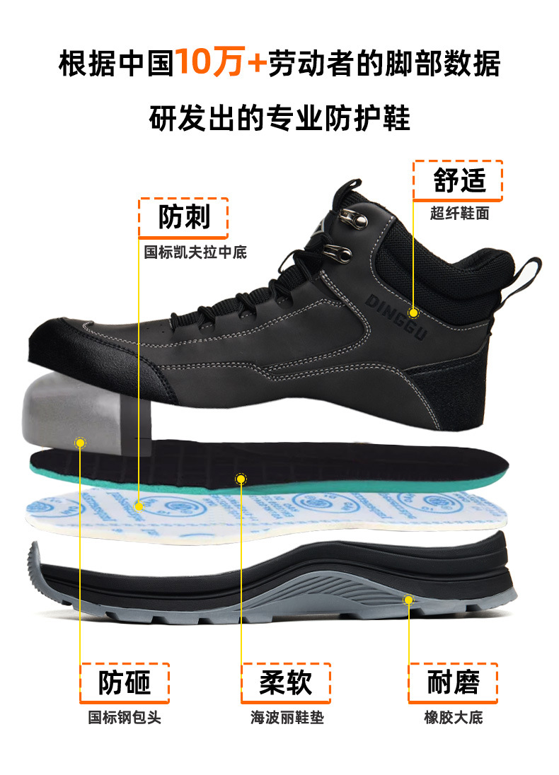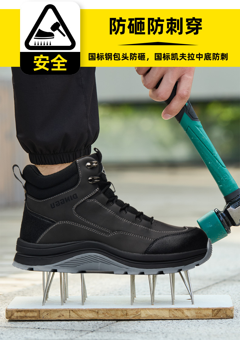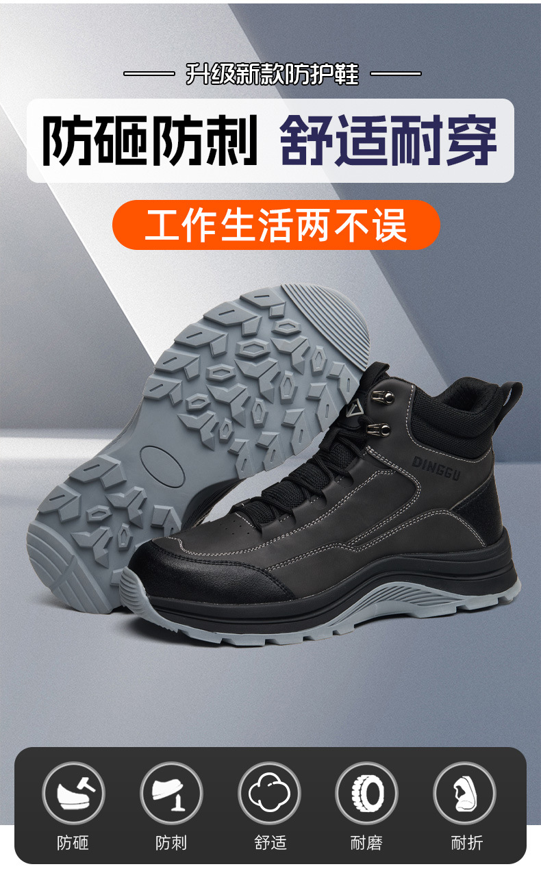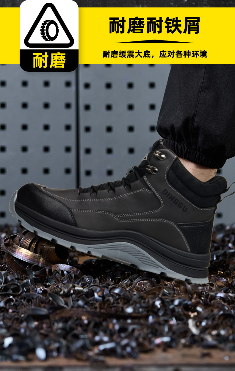 Dinggu 크로스 보더 선택 새로운 스틸 헤드 스매싱 방지 펑크 노동 보호 신발 내마모성 고무 단독 철 스크랩 방지 작업 신발스토어 가기