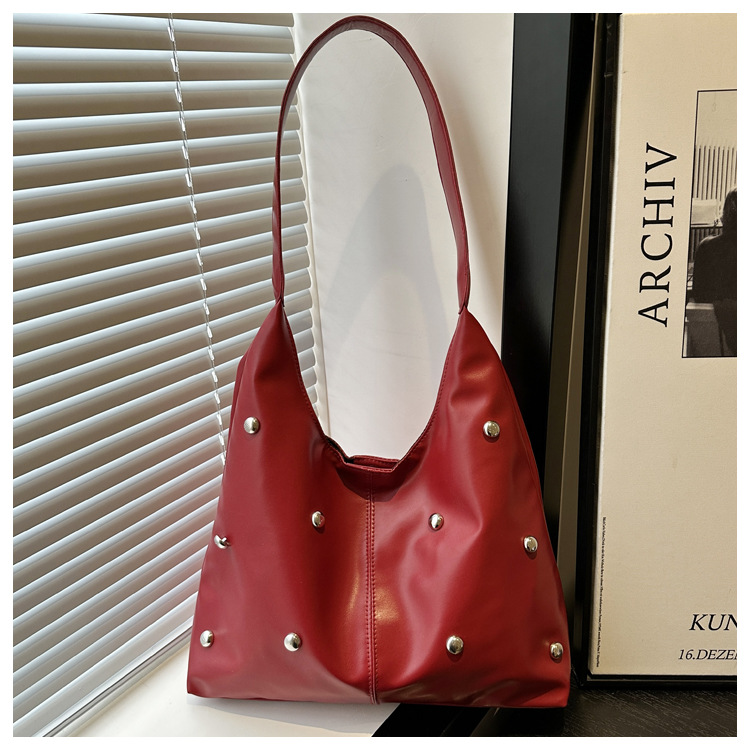 리벳 디자인 패션 2025 캐주얼 개성 여름 새로운 패션 간단한 크로스 바디 겨드랑이 숄더 백 여성용