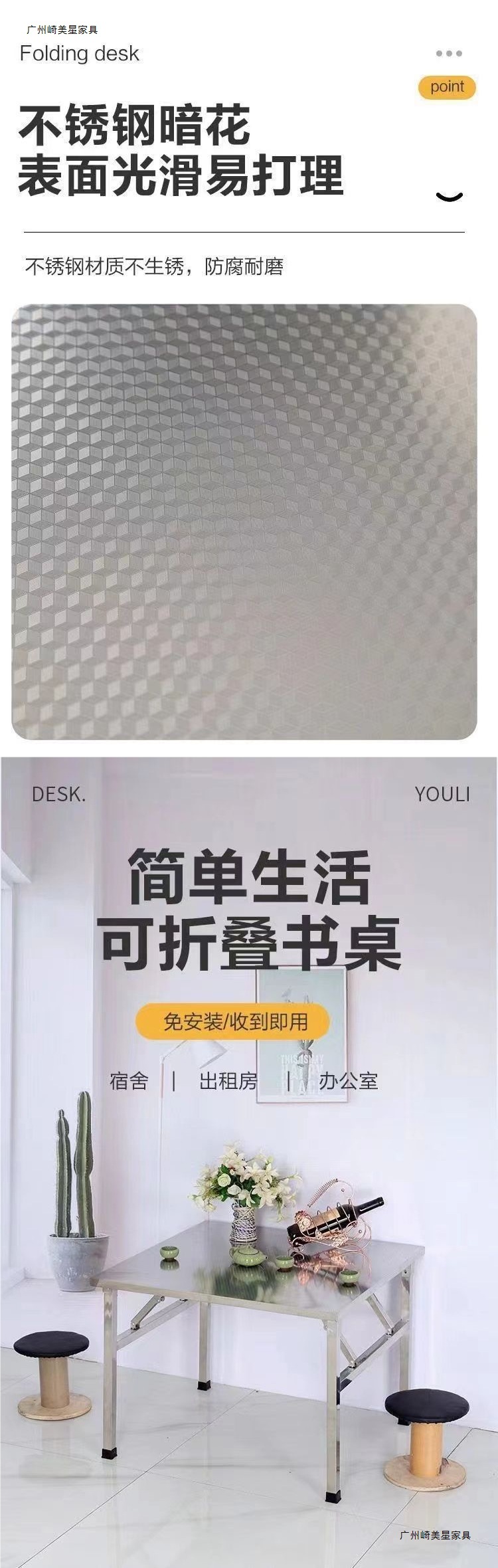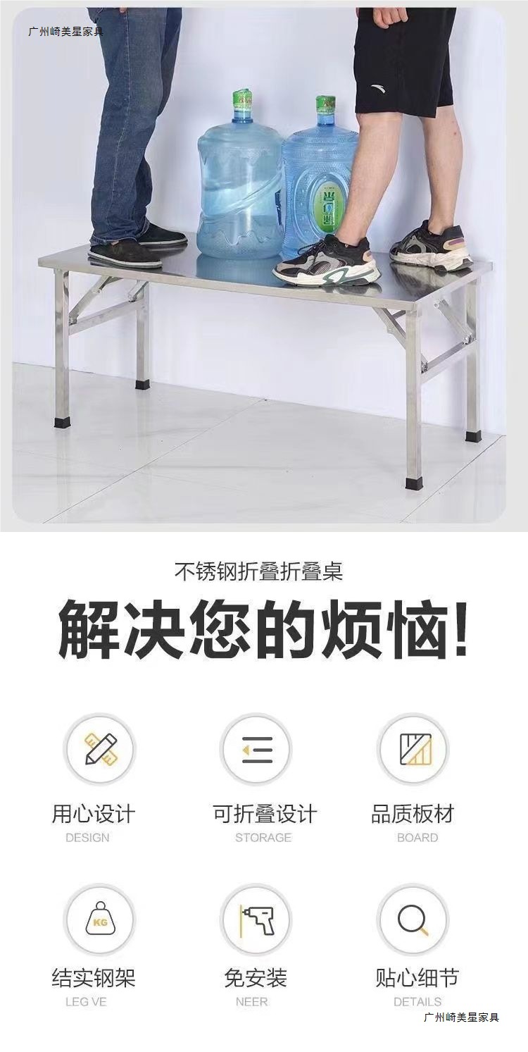 스테인레스 스틸 테이블, 매우 두꺼운 접이식 테이블, 기숙사 임대실 식탁, 야시장 야외 쓰기 휴대용 테이블