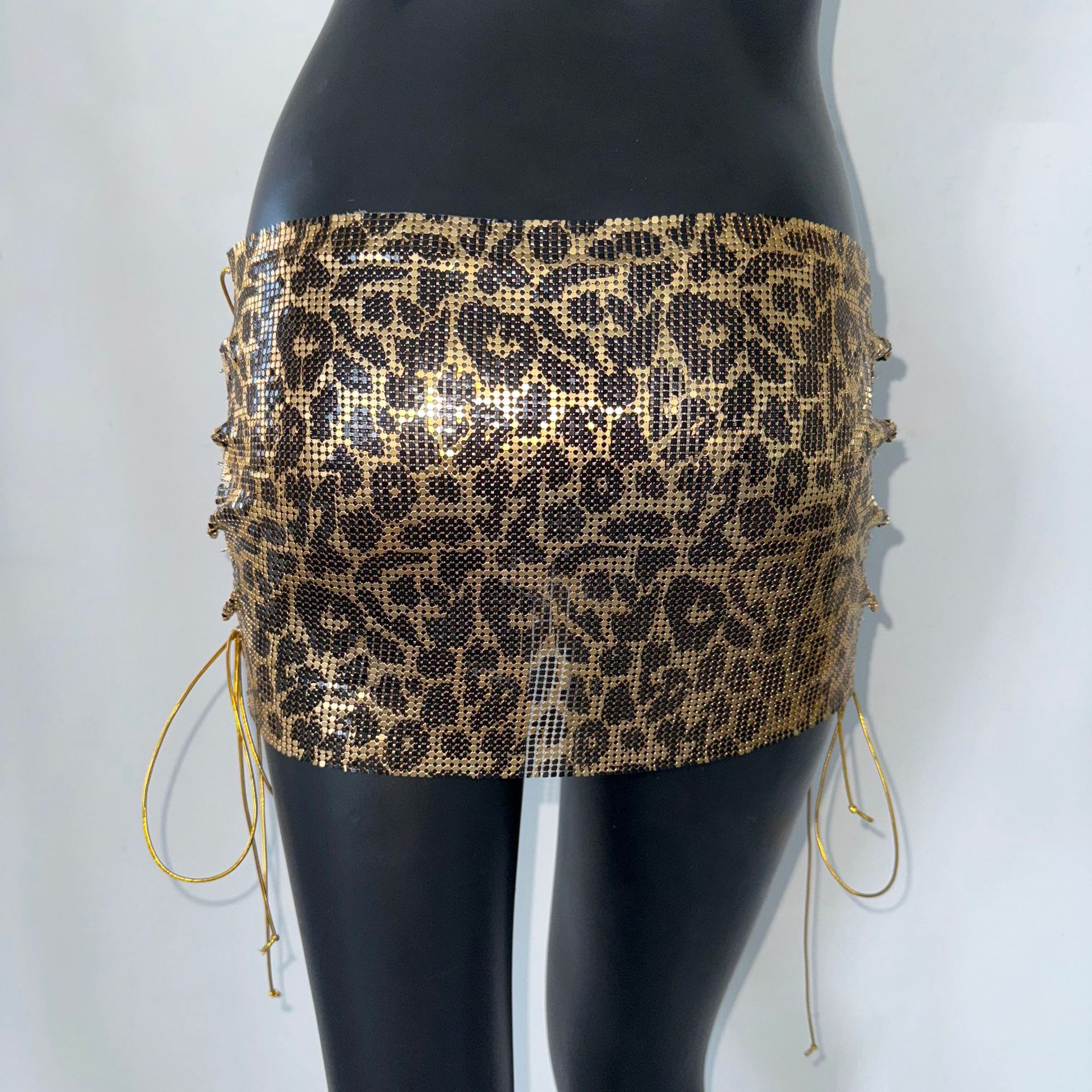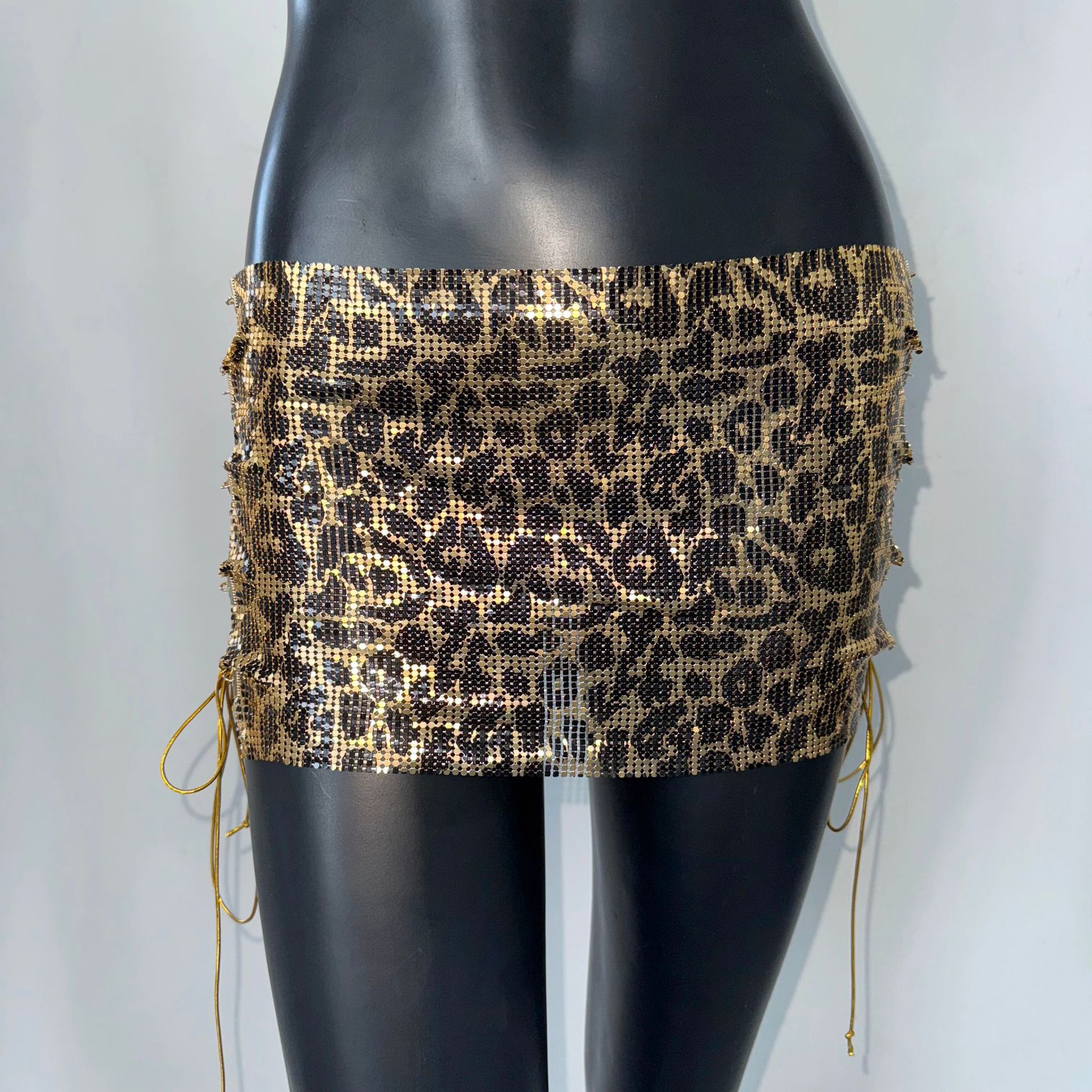 국경을 넘는 섹시한 핫걸 미니 스커트 메탈릭 레오파드 프린트 스커트 맞춤형 스트랩 스플라이싱 스커트 여성용 음악 축제 미니 스커트