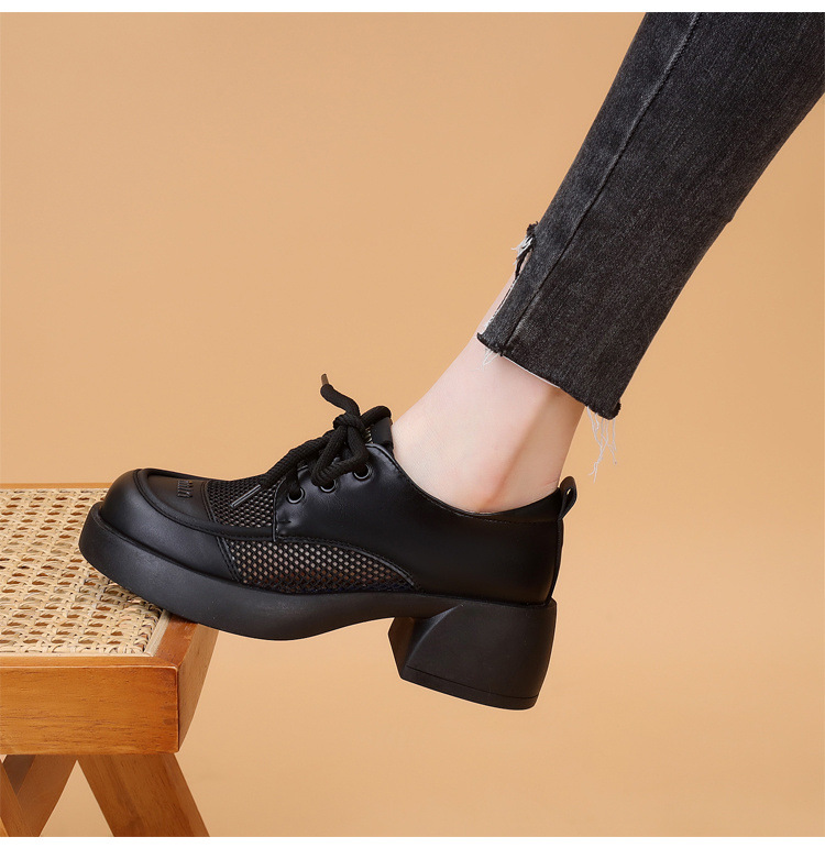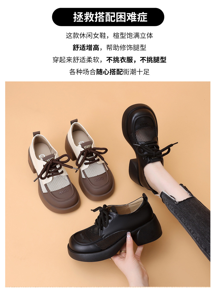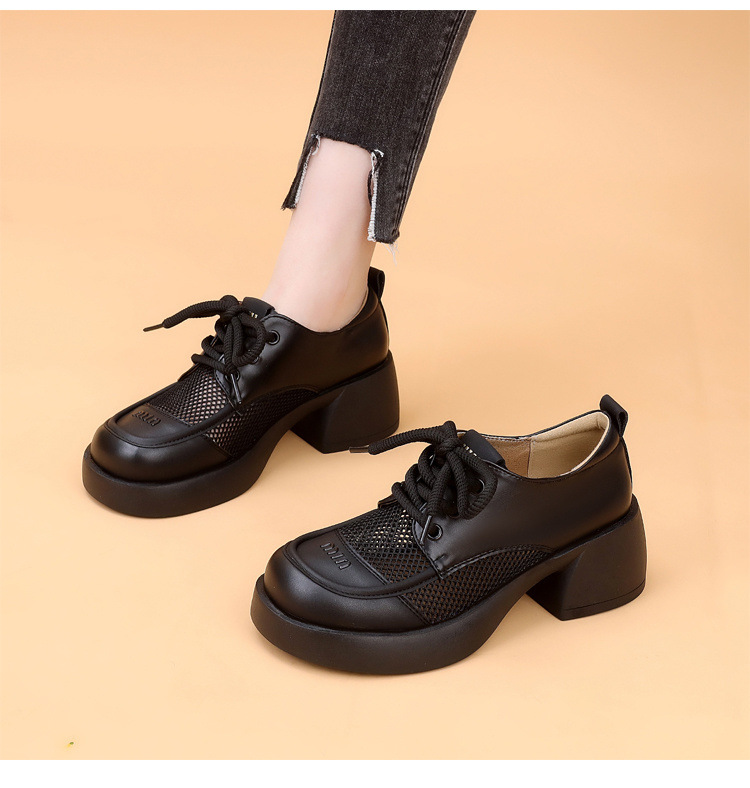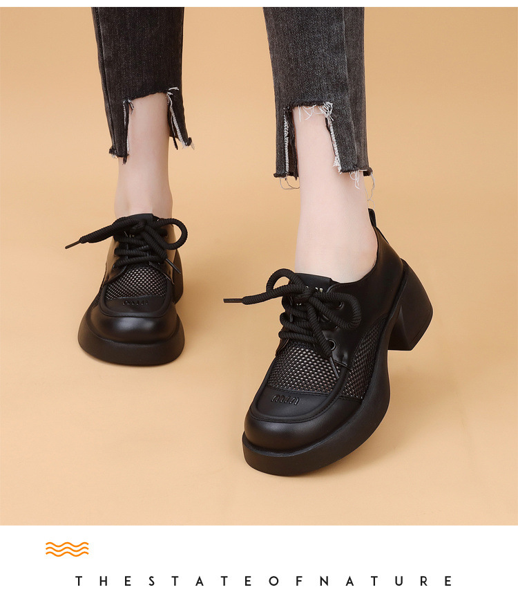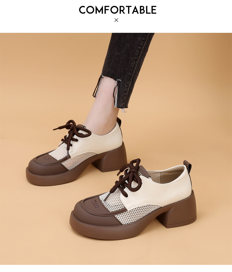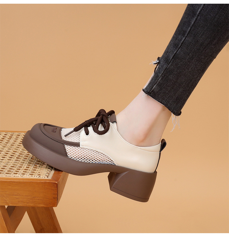 정품 가죽 플랫폼 메쉬 샌들 로퍼 여성 2025 년 여름 새로운 소프트 하단 컬러 블록 할로우 힐 통기성 싱글 레이어 신발스토어 가기