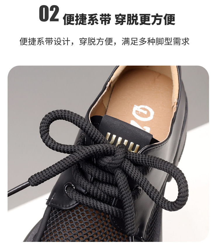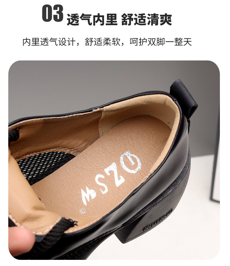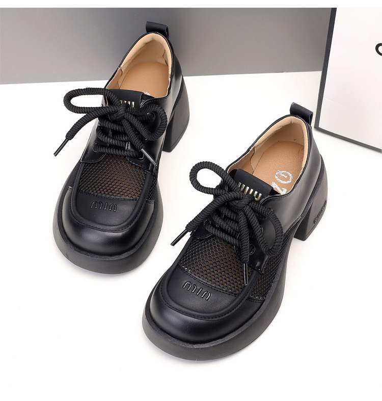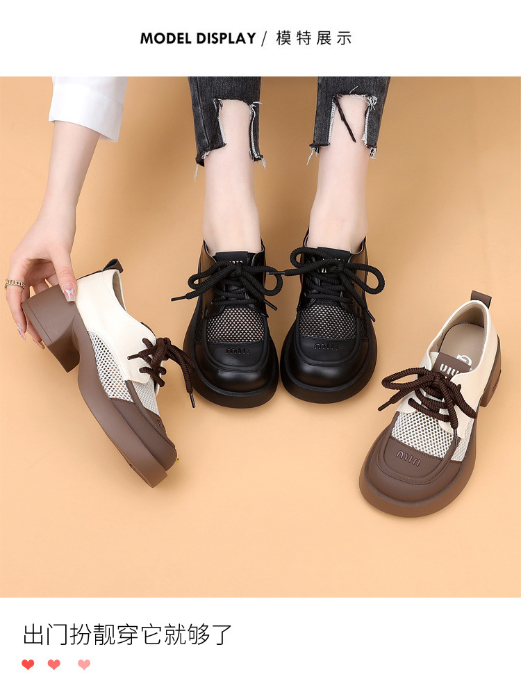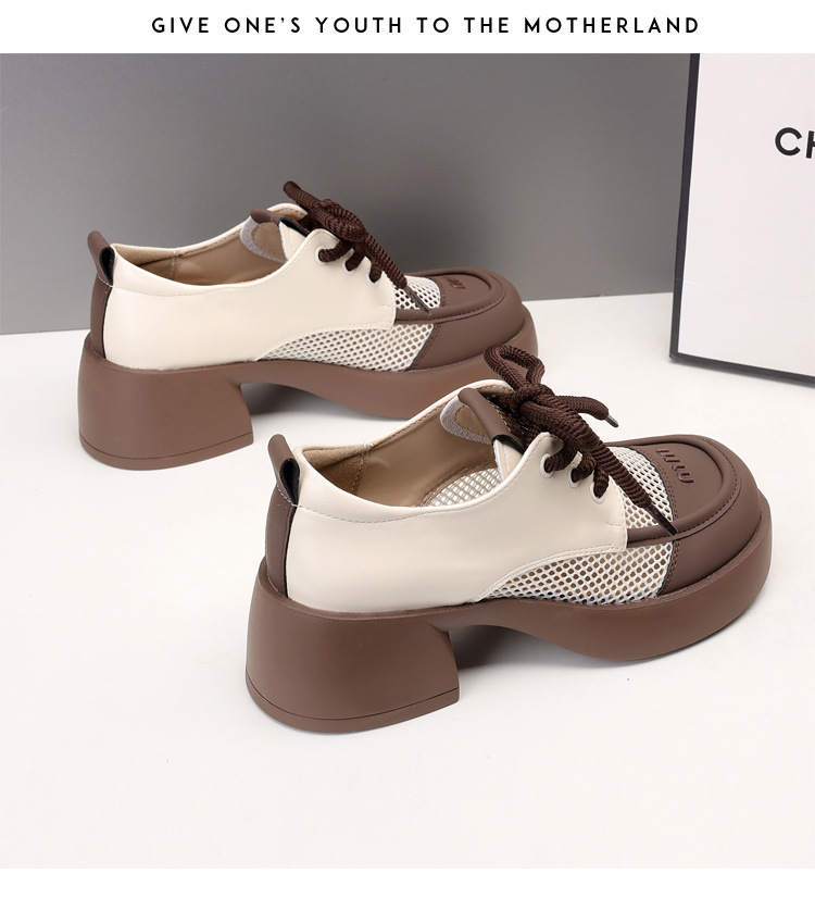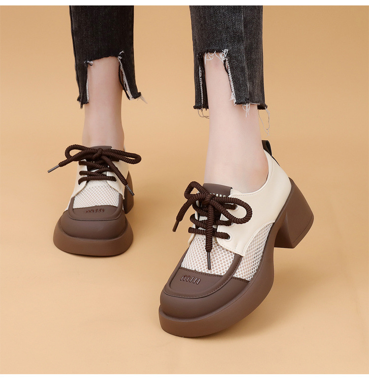 정품 가죽 플랫폼 메쉬 샌들 로퍼 여성 2025 년 여름 새로운 소프트 하단 컬러 블록 할로우 힐 통기성 싱글 레이어 신발스토어 가기