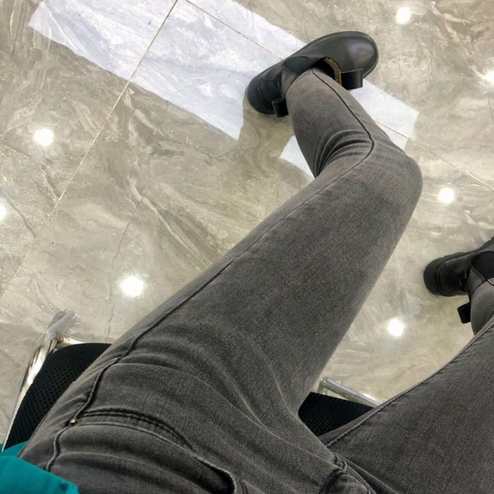 빈티지 높은 스트레치 블루 남성용 트렌디 한 연필 바지 슬림 데님 바지 파란색 슬림 모양 유행 연필 바지