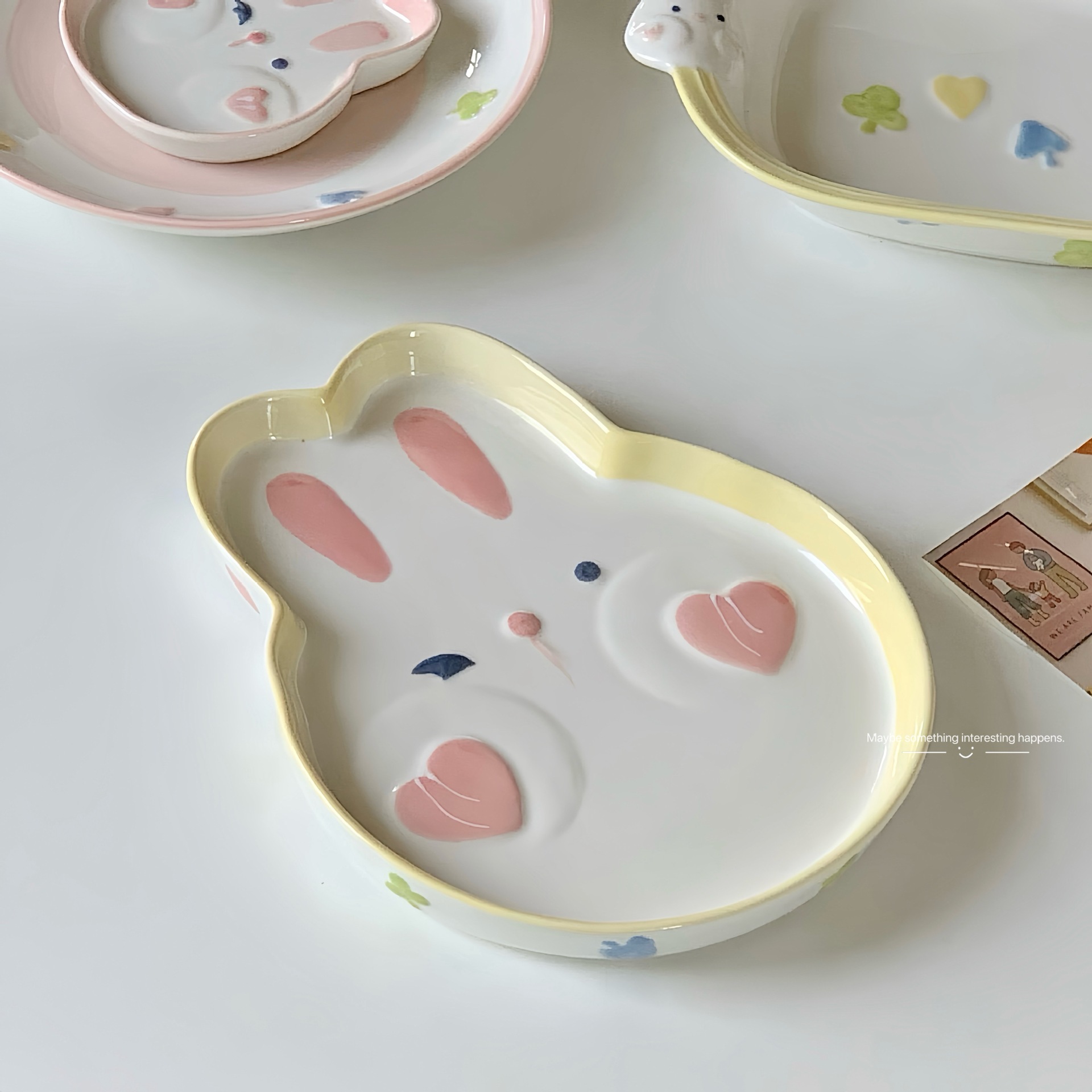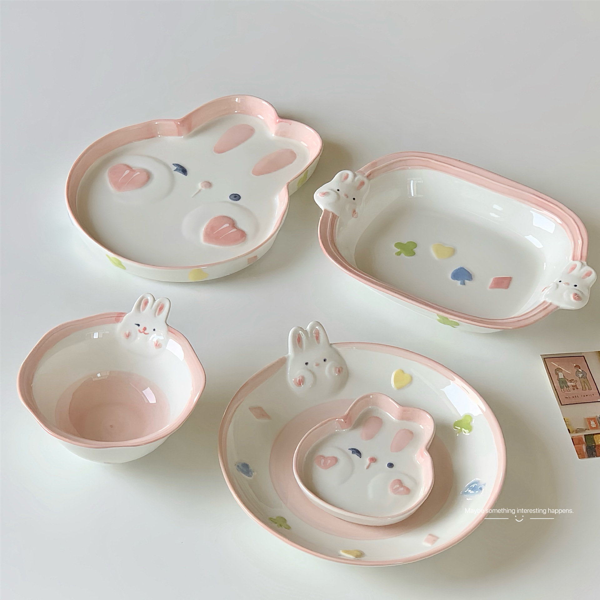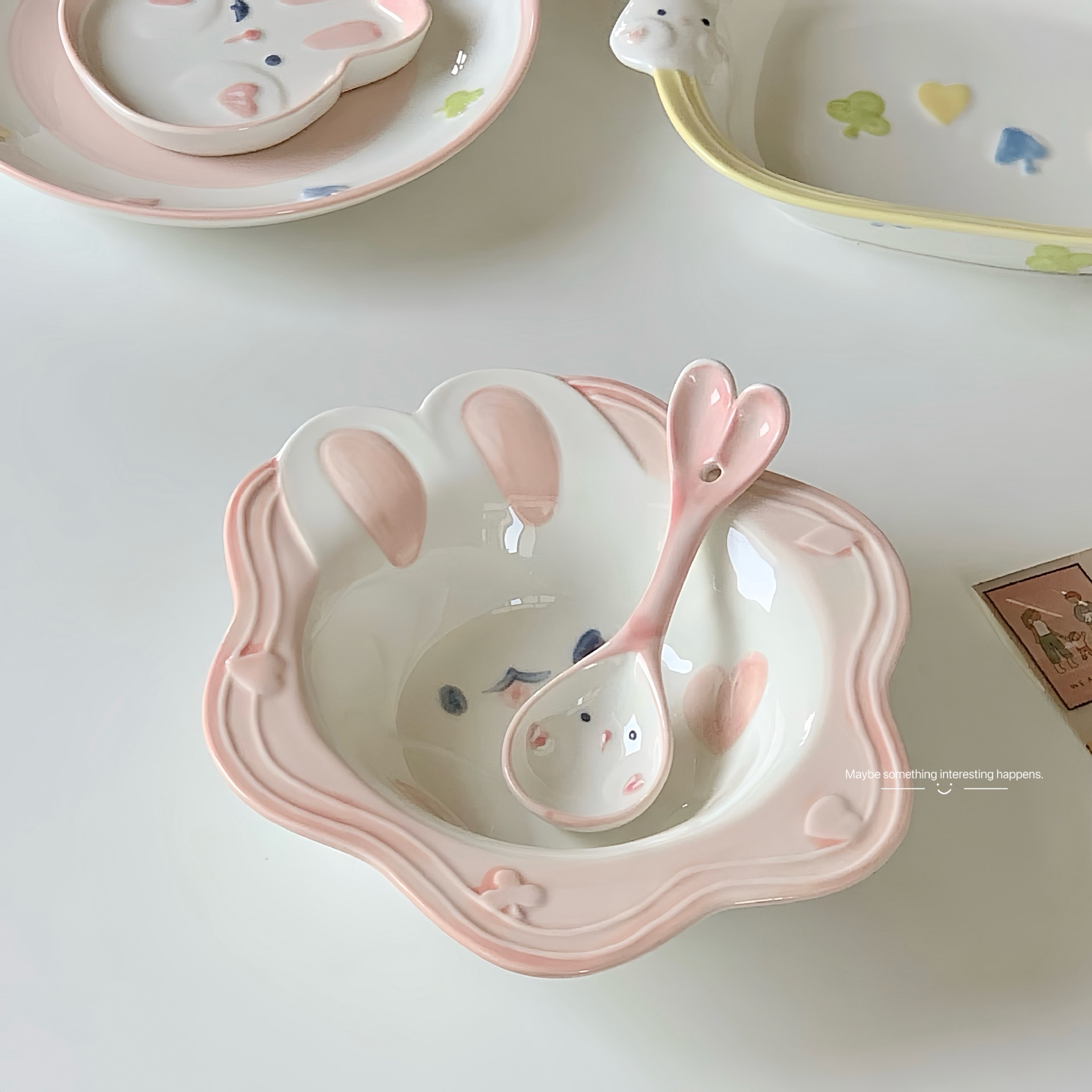 여자 고 가치 식기 보보 래빗 세라믹 언더 글레이즈 컬러 보울과 접시 세트 인 스타일 다이닝 보울 디저트 요거트 볼