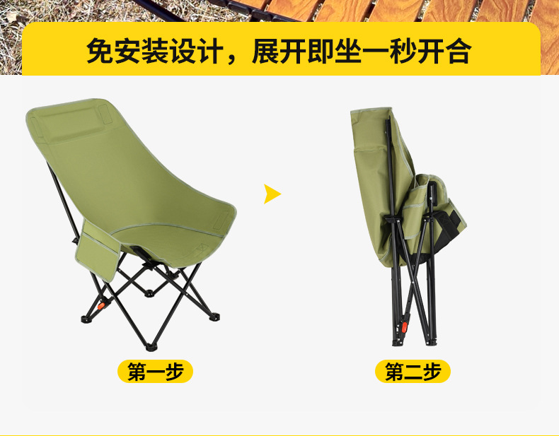 Kunxu 야외 하이백 리클라이닝 문 체어 캠핑 의자 안락 의자 발 받침대가 있는 홈 레저 접이식 의자 3단 조절 가능스토어 가기