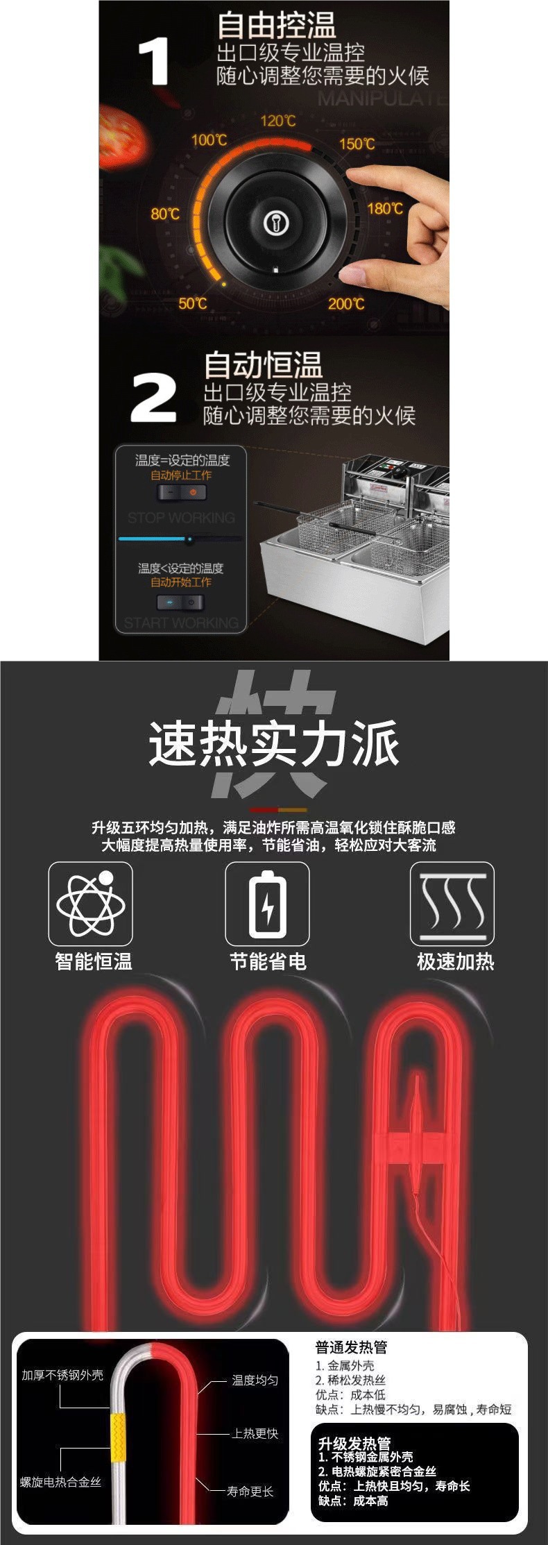 • 매우 긴 업그레이드된 두꺼운 버전 + 튀김 바구니 2개 + 뚜껑