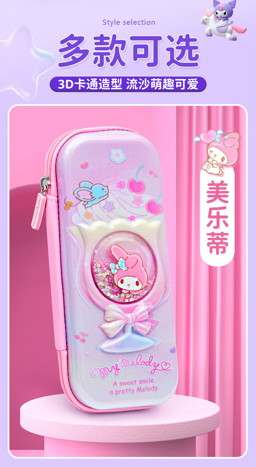 산리오 3D 퀵 샌드 연필 케이스 멜로디 연필 케이스 소녀 연필 케이스 초등학교 어린이 연필 케이스