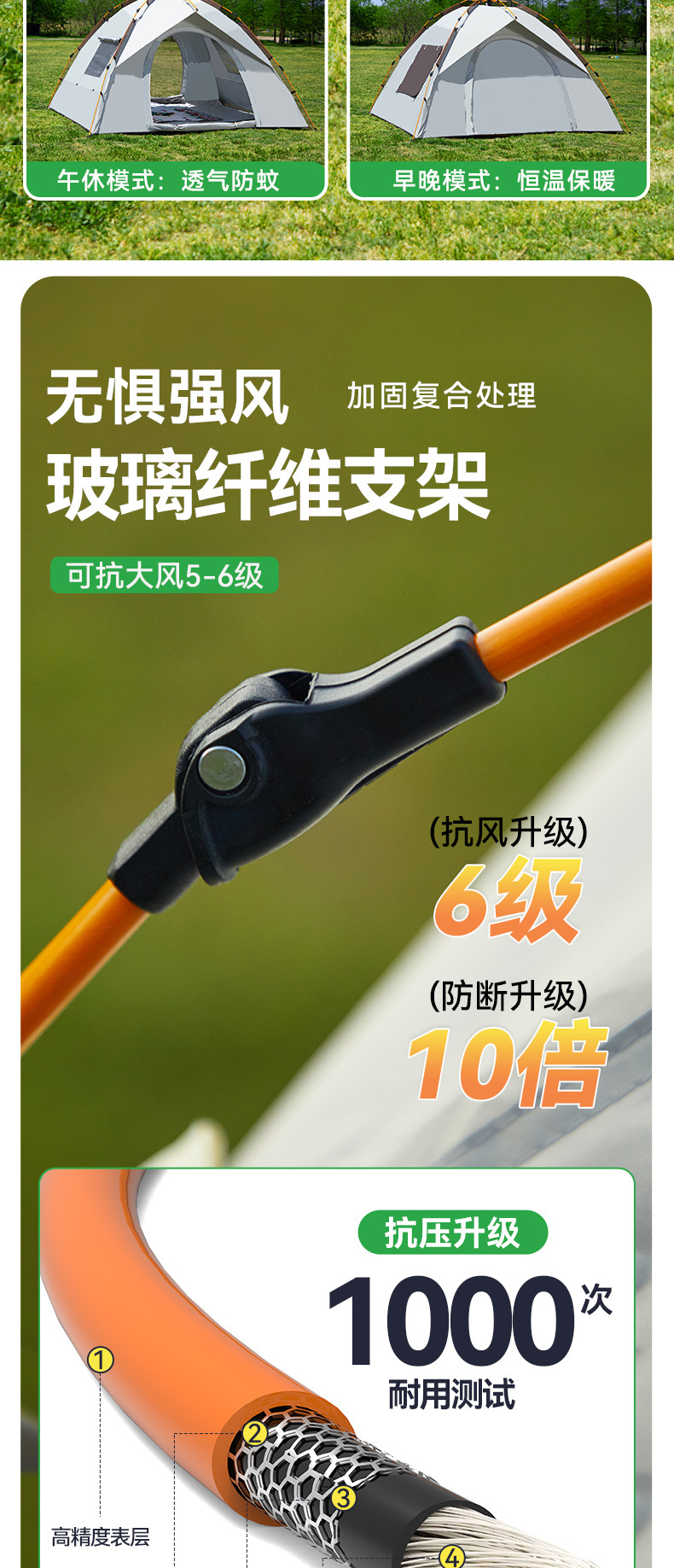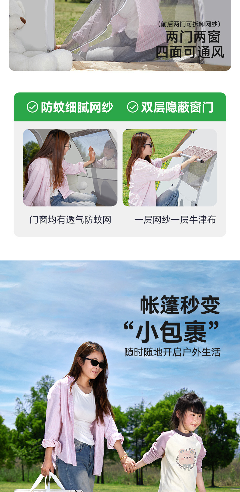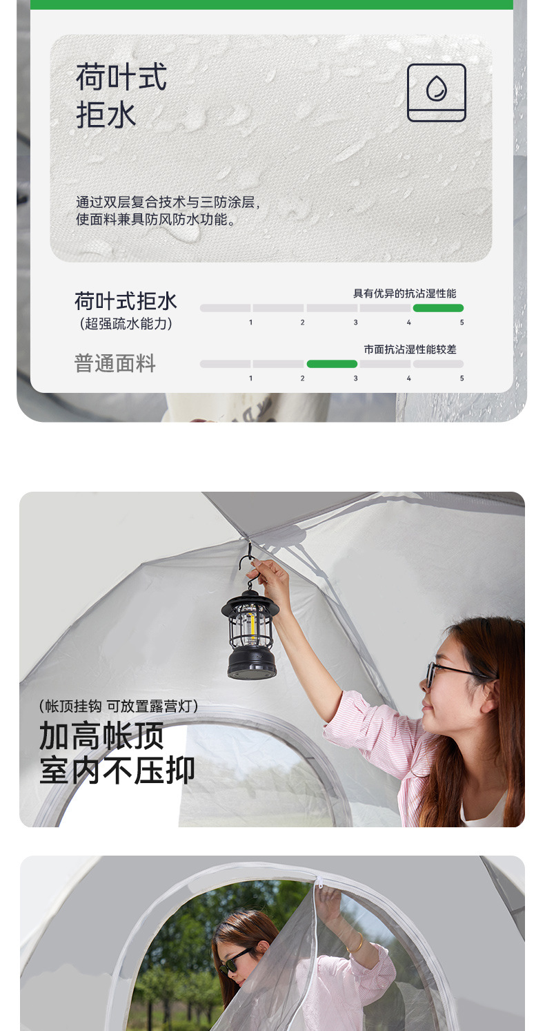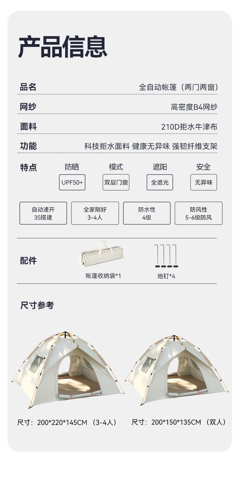• 신형 [카키+오프화이트] 더블세트(2도어 창문 없는 버전) 중형 2~3인 [무료 수납가방 + 바닥못 + 방풍로프]