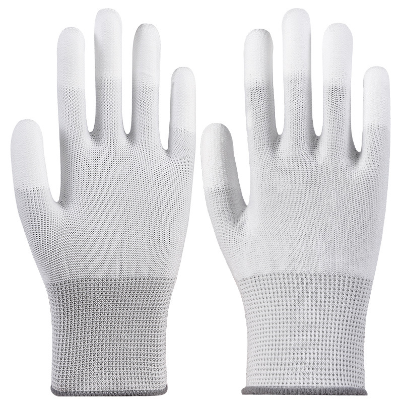 PU 코팅 나일론 노동 보호 정전기 방지 장갑 전자 먼지가 없는 얇은 고무 코팅 여름 얇은 미끄럼 방지 통기성