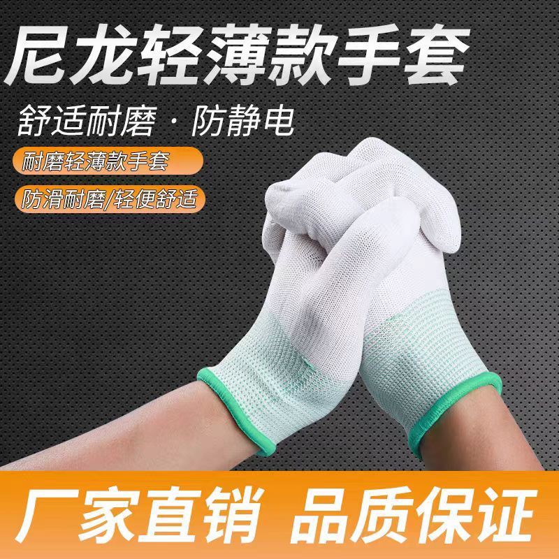 PU 코팅 나일론 노동 보호 정전기 방지 장갑 전자 먼지가 없는 얇은 고무 코팅 여름 얇은 미끄럼 방지 통기성스토어 가기
