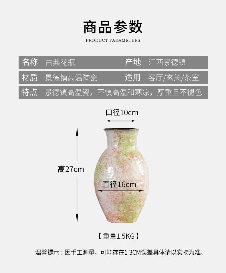 Yunshe Jingdezhen 세라믹 꽃병 고온 홈 입구 새로운 중국 스타일 수제 장식 물 재배기구 장식품스토어 가기