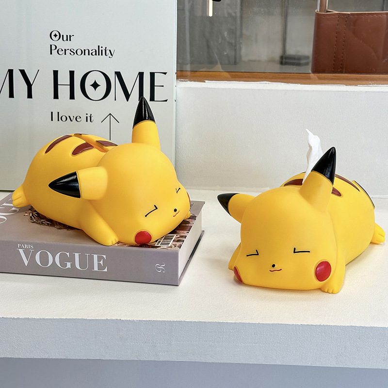 만화 귀여운 피카추 티슈 상자 티슈 상자 장식품 홈 거실 침실 고가 티슈 상자 장식