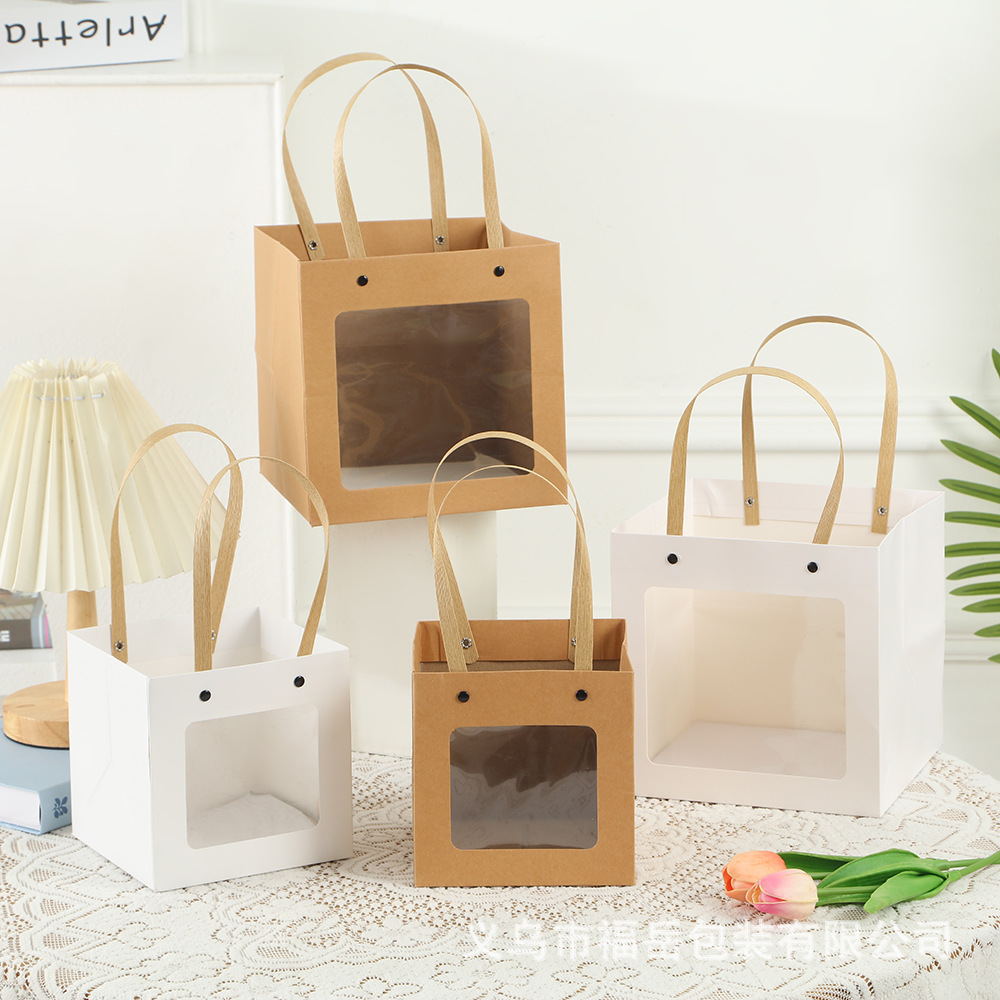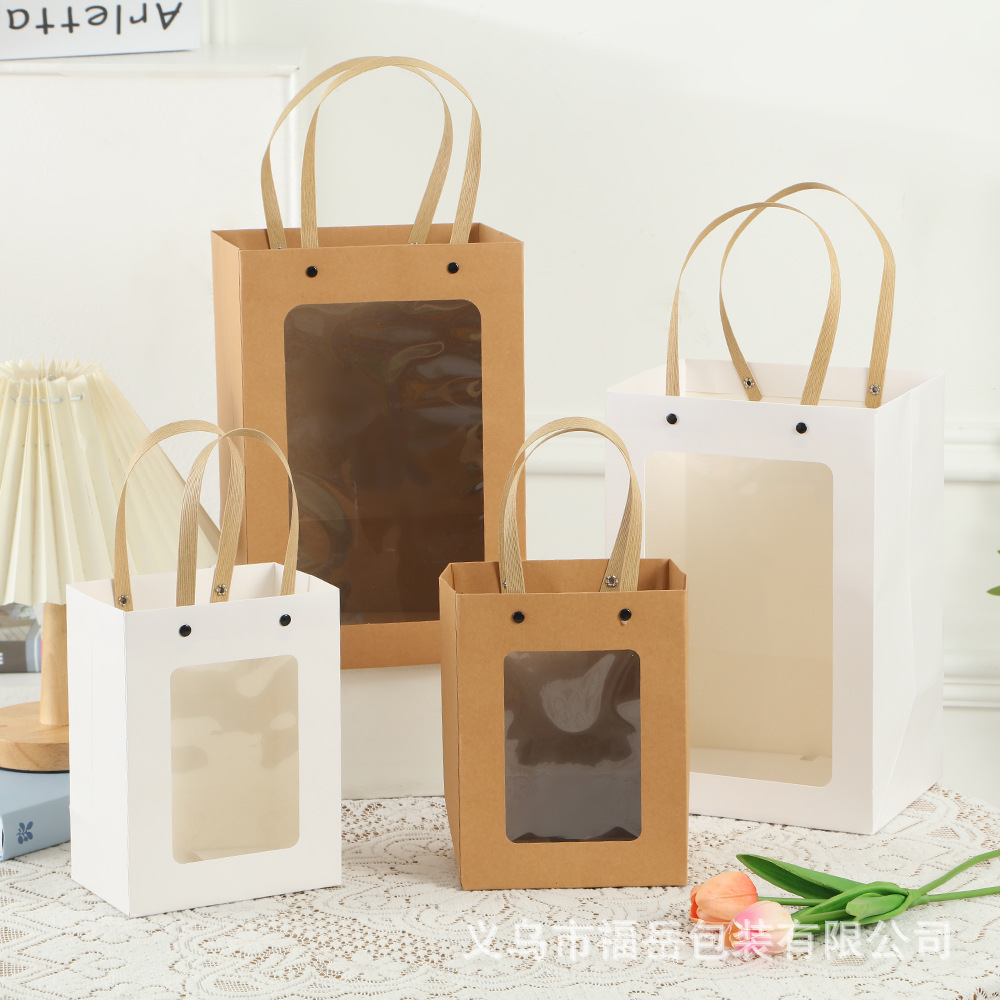 선물 가방, 중추절 크라프트 종이 가방, 발렌타인데이 선물 가방, 케이크 베이킹 고급 투명 리벳 핸드백스토어 가기