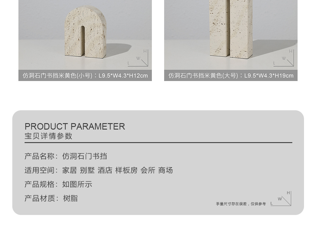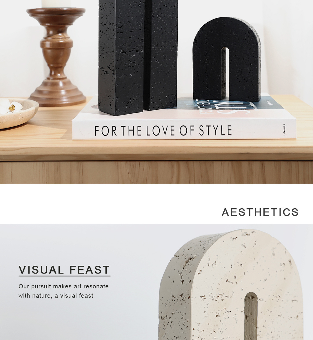 • 모조 석회화 적층 아치 북엔드(베이지색)