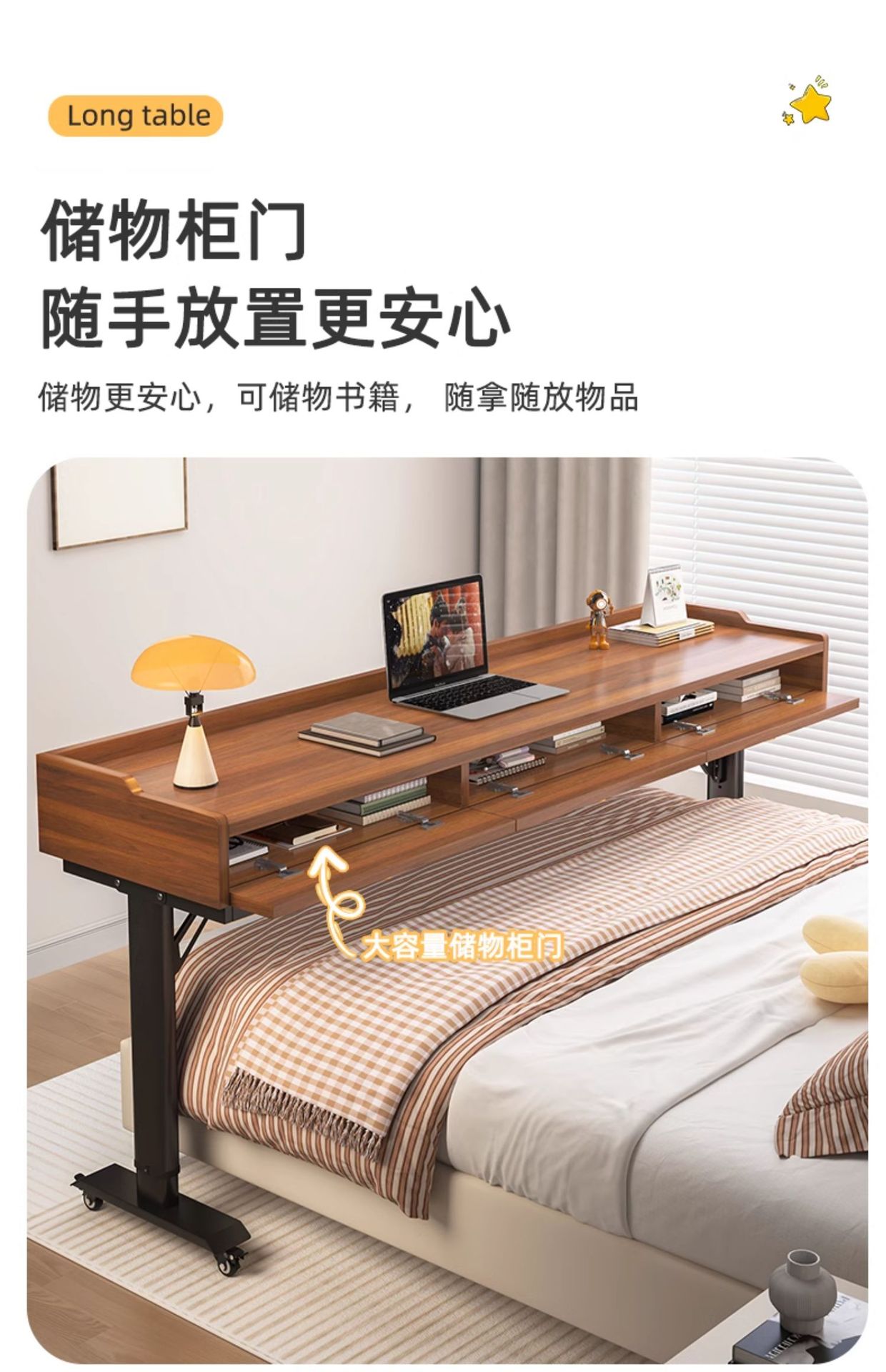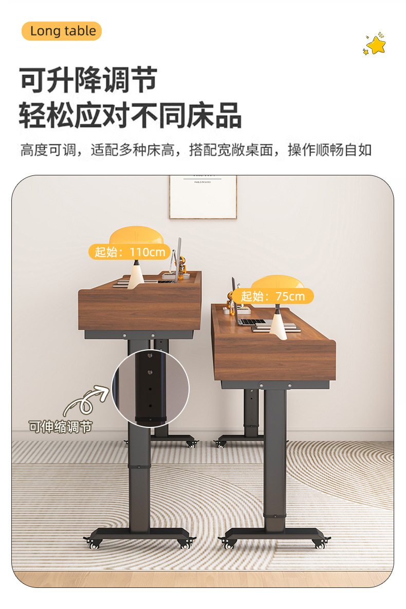 원목 침대 사이 테이블, 이동식 리프트 테이블, 소형 침대 옆 테이블, 컴퓨터 테이블, 긴 테이블, 게으른 침대 학습 테이블