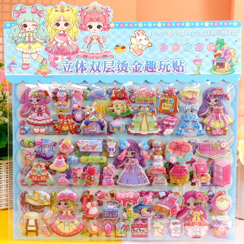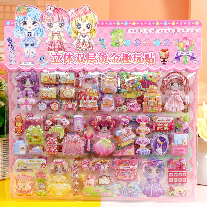 어린이 만화 스티커 더블 레이어 입체 산리오 쿠로미 멜로디 울트라맨 스티치 엘사 버블 스티커스토어 가기