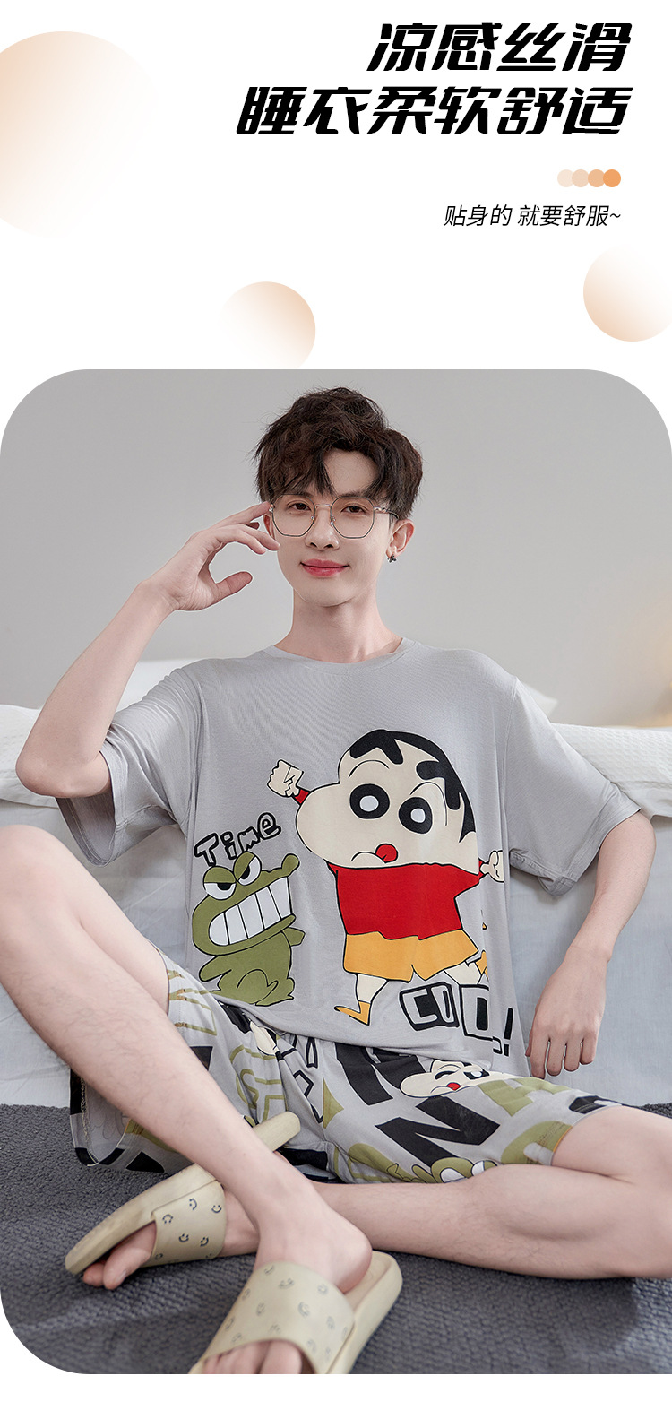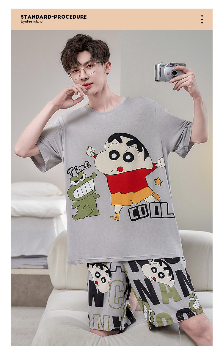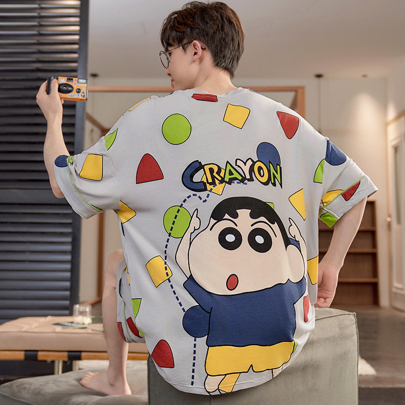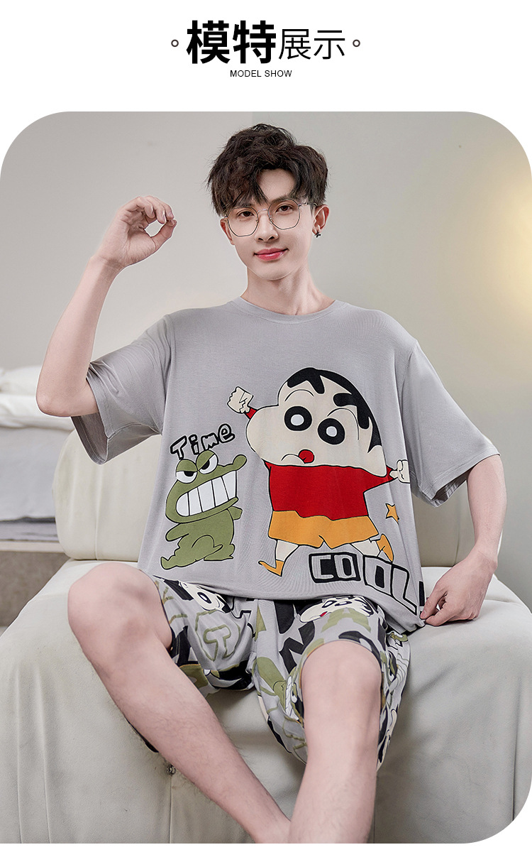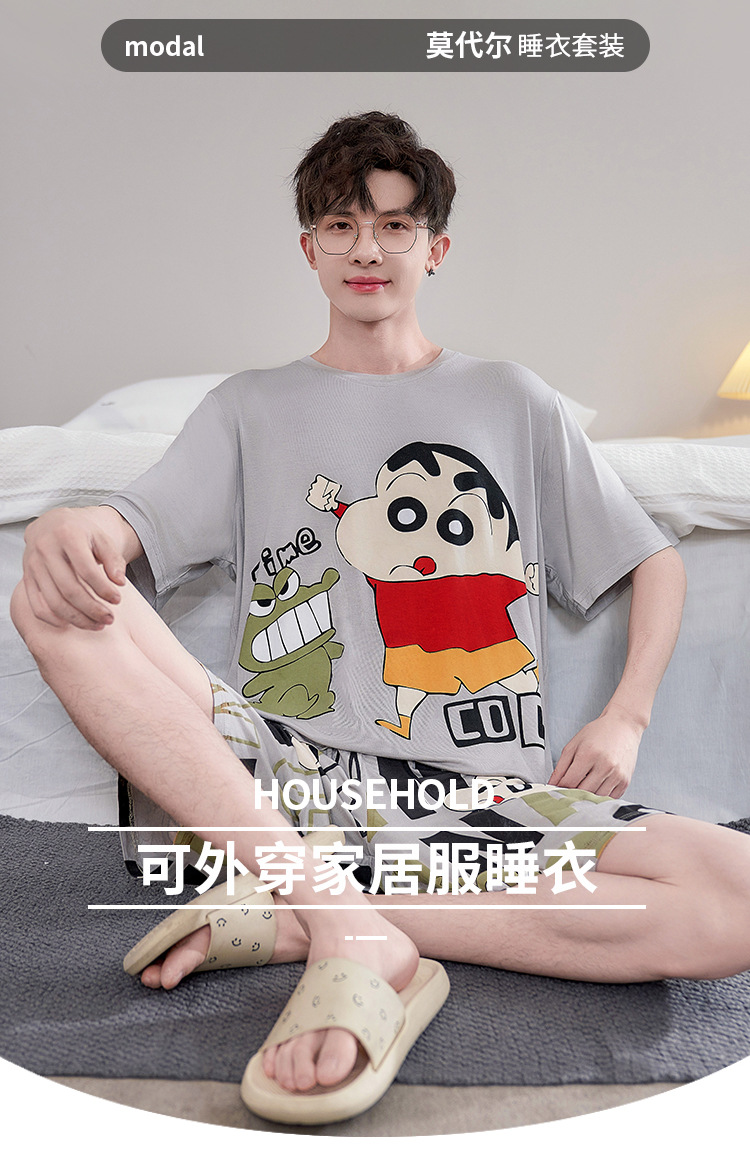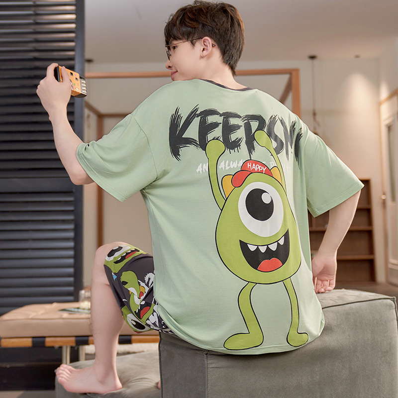 남성용 잠옷 여름 모달 반팔 만화 플러스 사이즈 청소년 학생 여름 얇은 가정복 세트스토어 가기