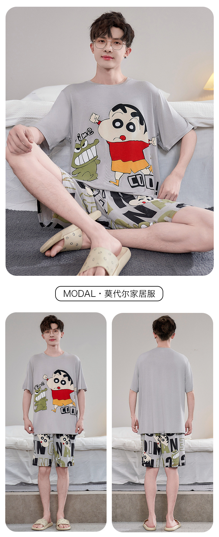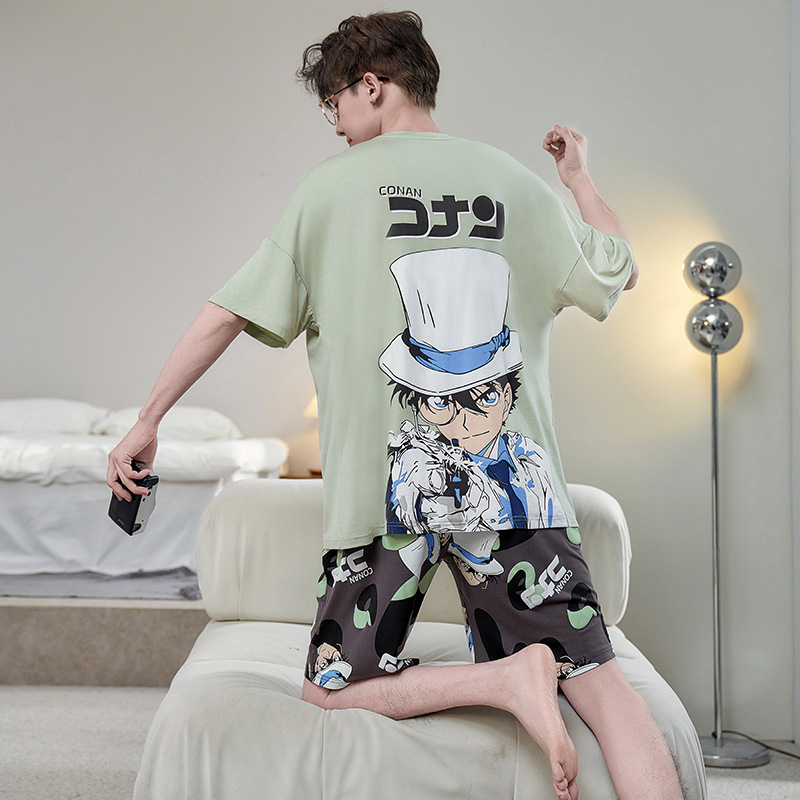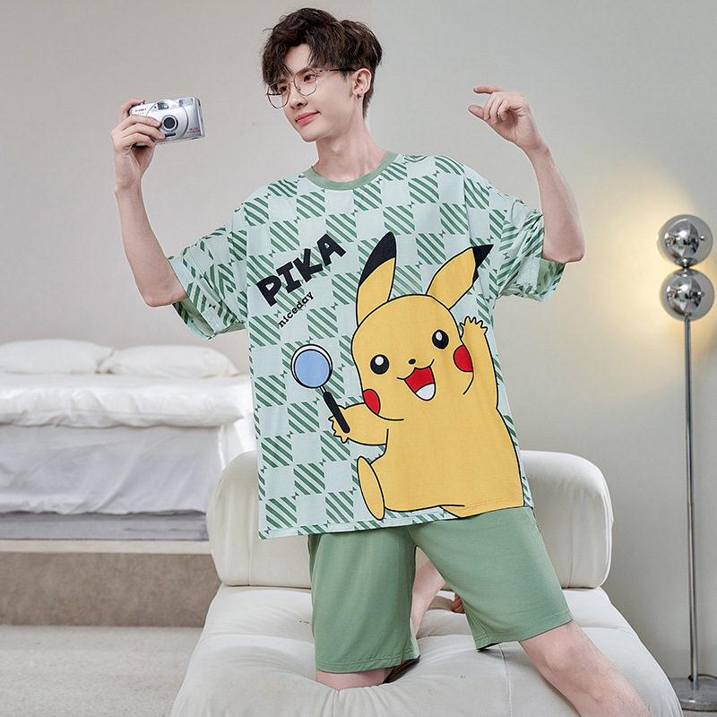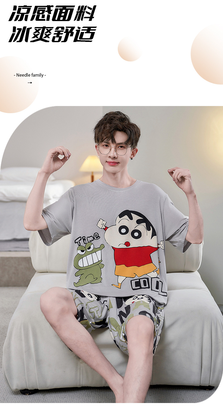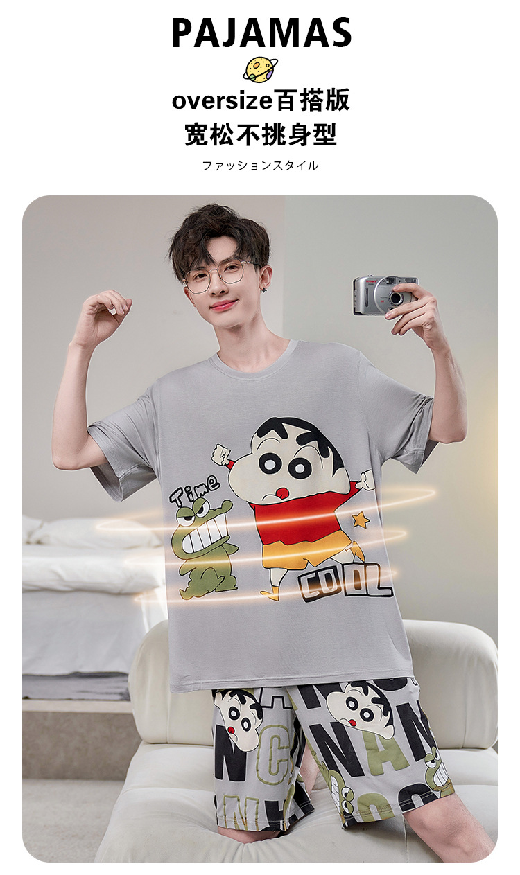 남성용 잠옷 여름 모달 반팔 만화 플러스 사이즈 청소년 학생 여름 얇은 가정복 세트스토어 가기