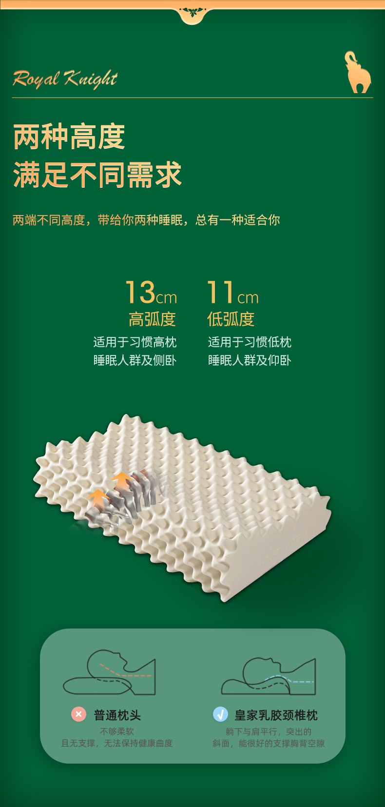공장 RoyalKnight 성인 라텍스 베개 원래 천연 고무 베개 항균 목 보호 라텍스 베개 선물스토어 가기