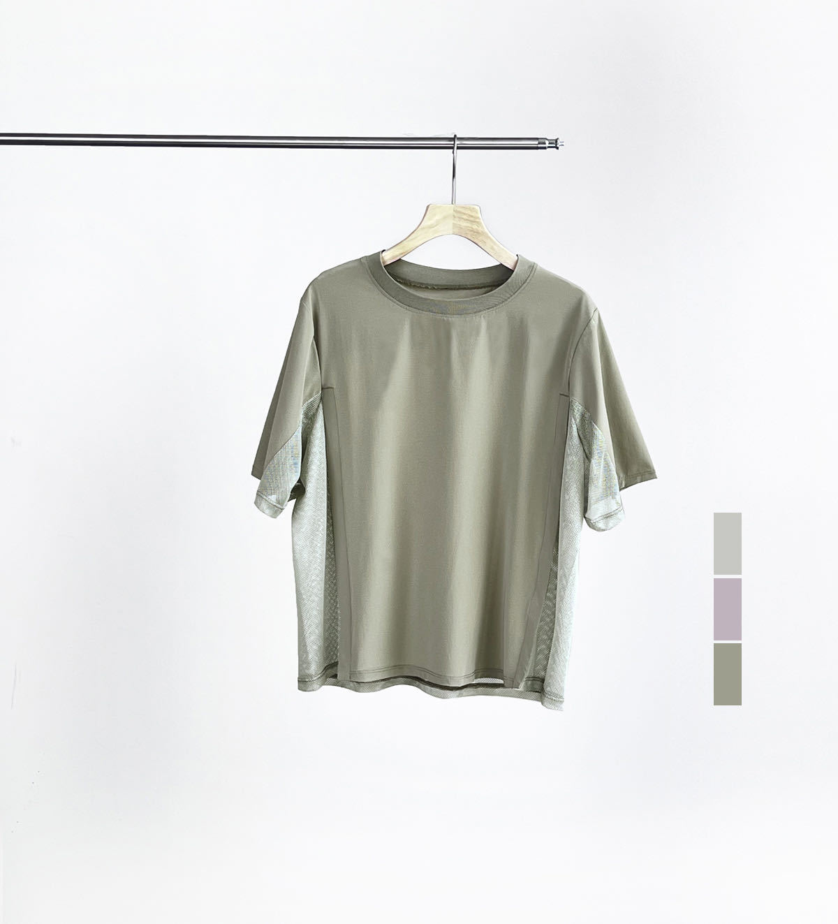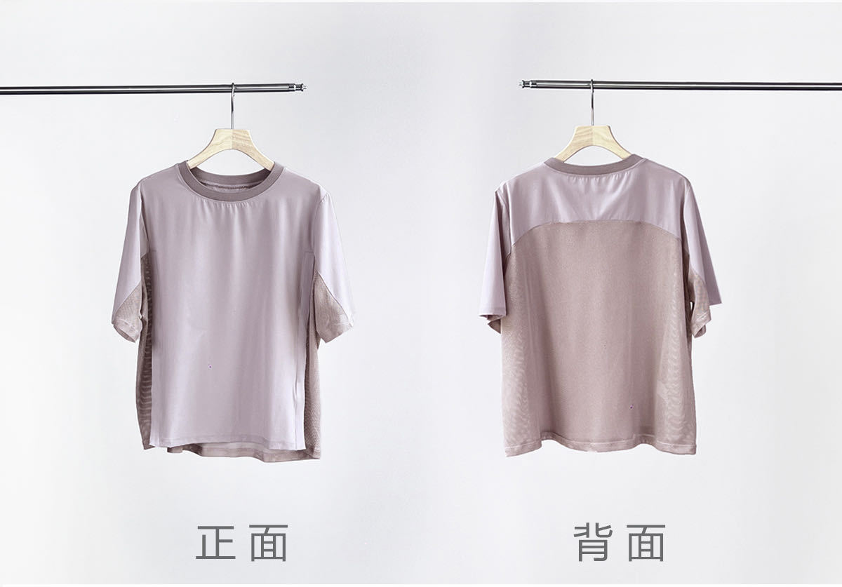 여름 새로운 야외 레저 통근 편안한 산악 스타일 메쉬 할로우 라운드 넥 짧은 소매스토어 가기