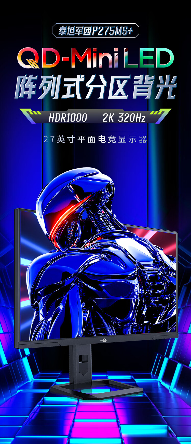 타이탄 군단 P275MS 27 인치 2K 320Hz 비디오 게임 사무실 LCD 화면 MiniLED
