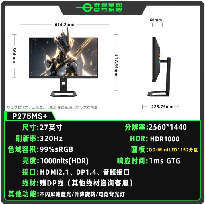 • P275MS+- 27inch -2k-320hz-QD 퀀텀닷-MiniLED