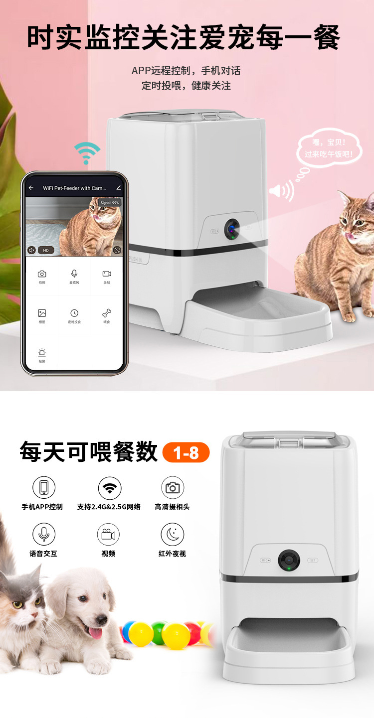 감시 비디오 APP를 갖춘 스마트 애완동물 급식기는 대용량 방습 식품 저장 ODM 및 OEM을 원격으로 급식합니다.스토어 가기