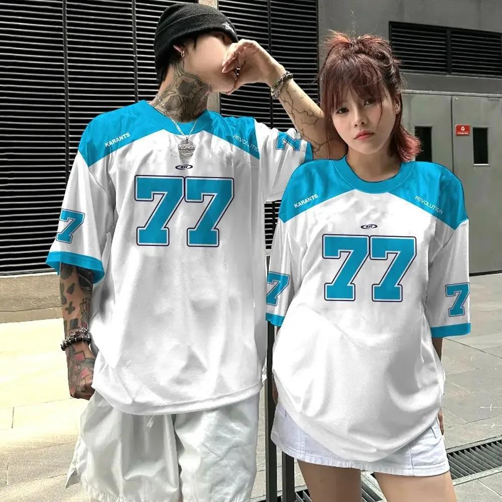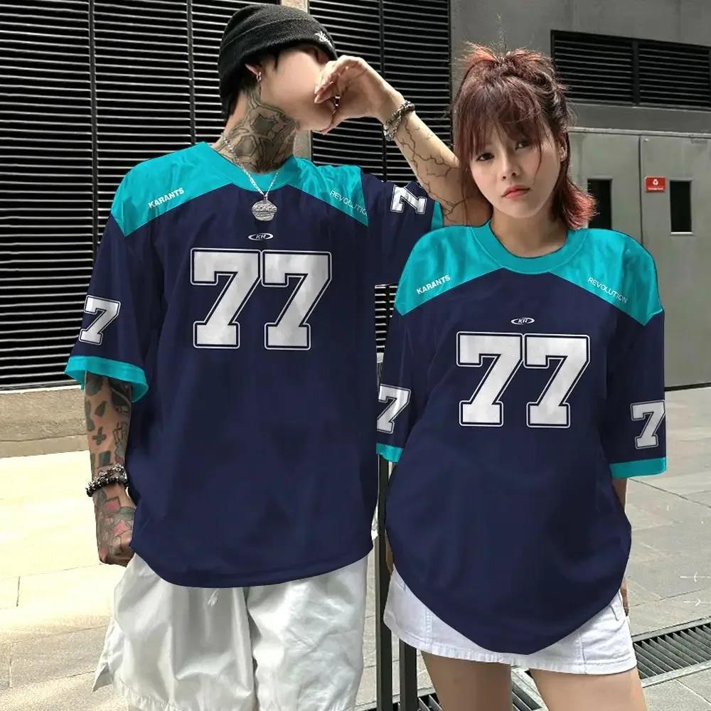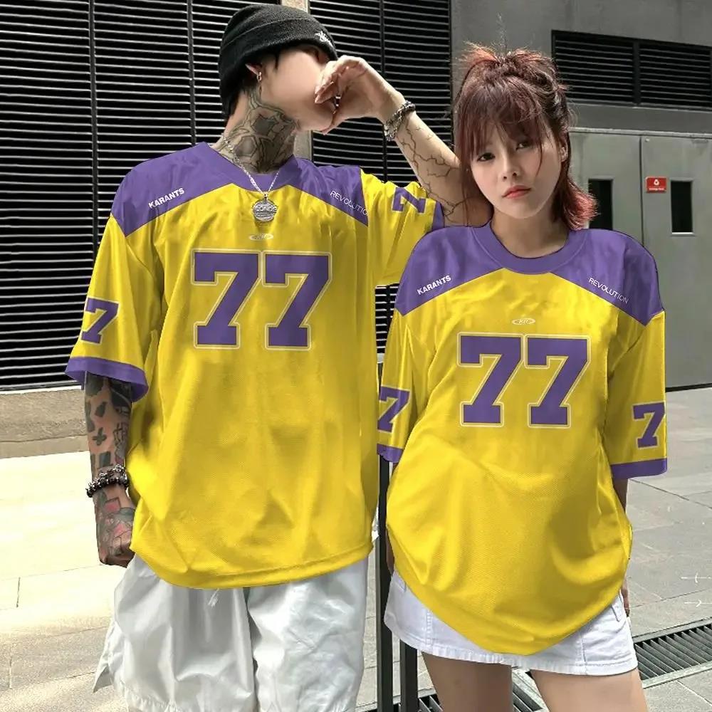 Shopee 크로스보더 아이스 하키 No. 77 미국 티셔츠 남성 및 여성 스포츠 속건성 반팔 트렌디 저지 루즈 남성 여름