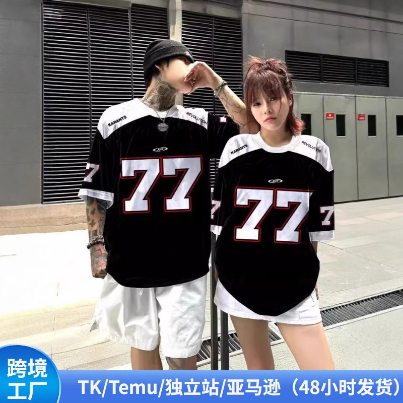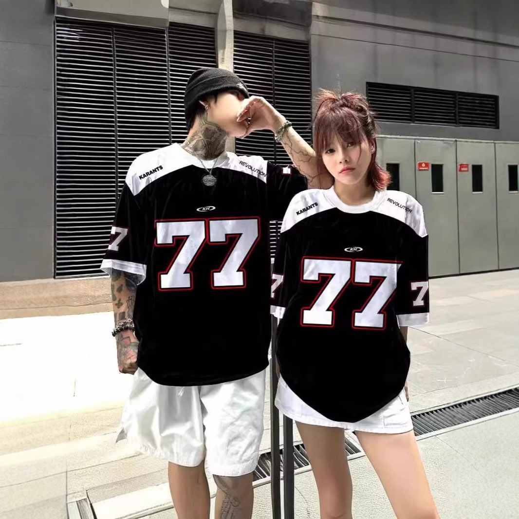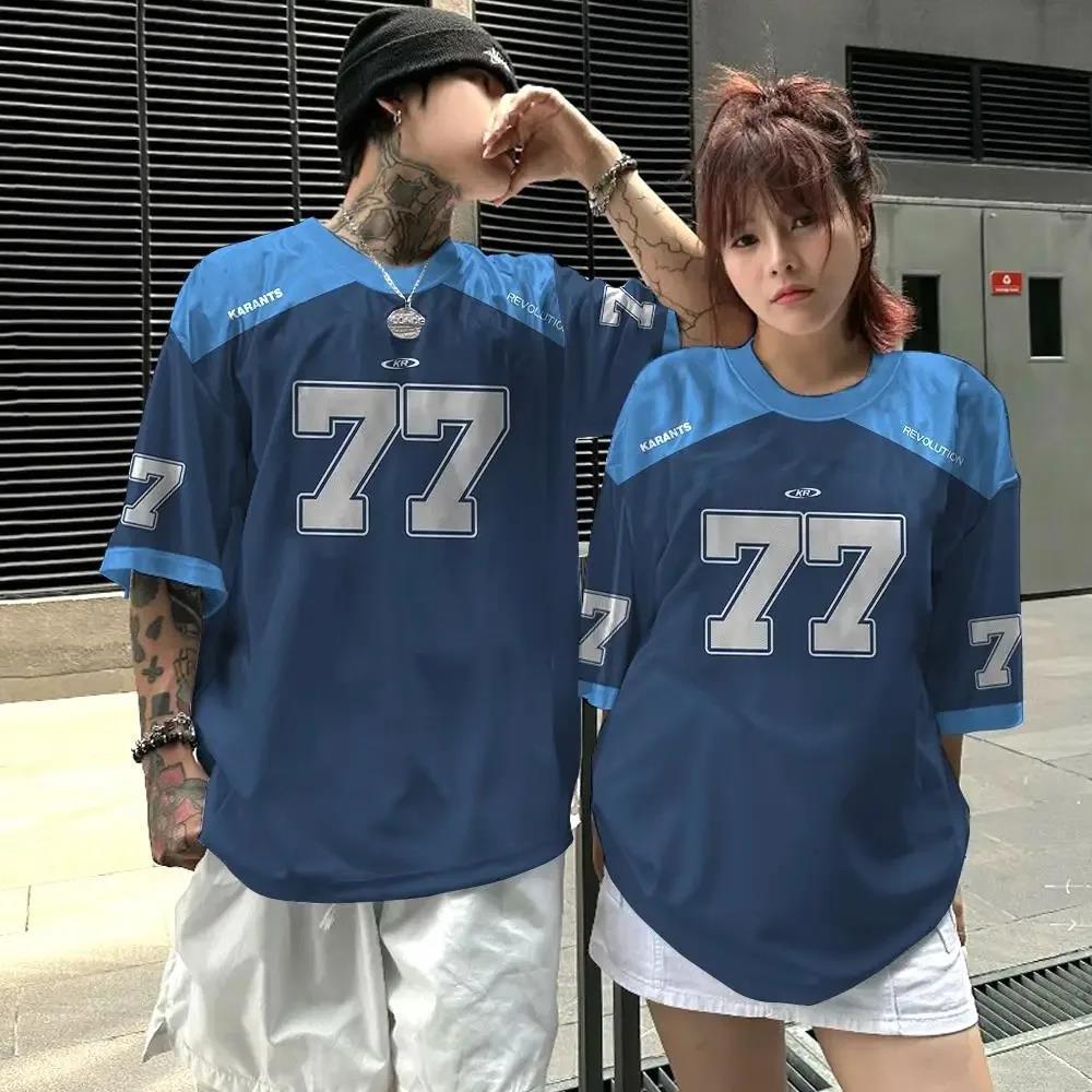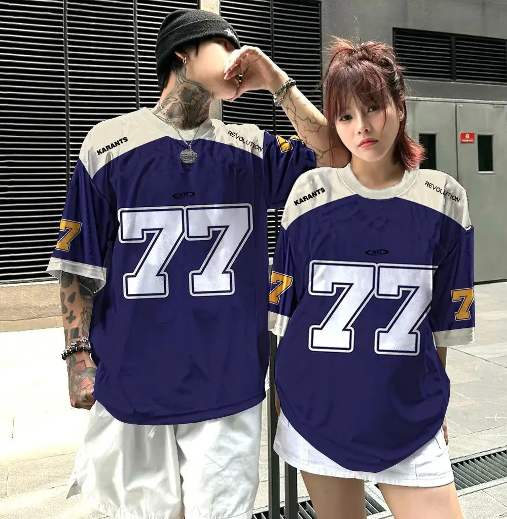 Shopee 크로스보더 아이스 하키 No. 77 미국 티셔츠 남성 및 여성 스포츠 속건성 반팔 트렌디 저지 루즈 남성 여름