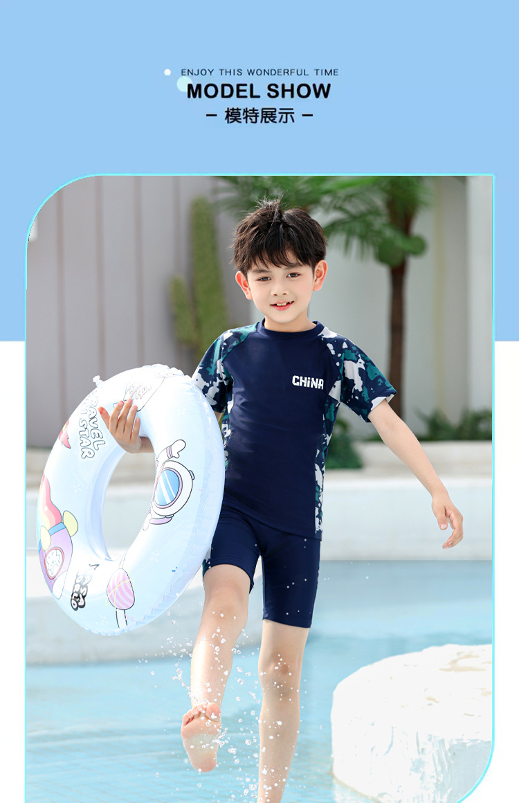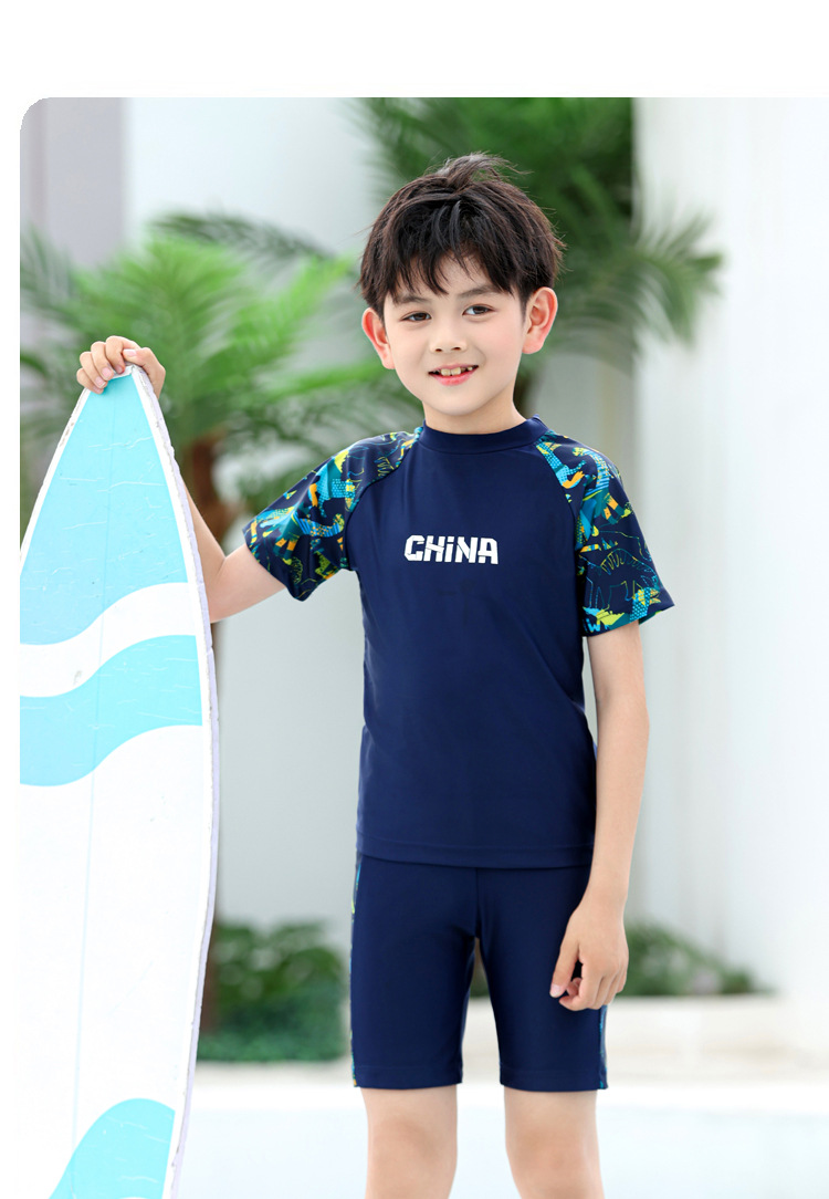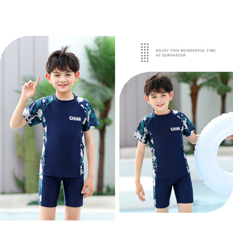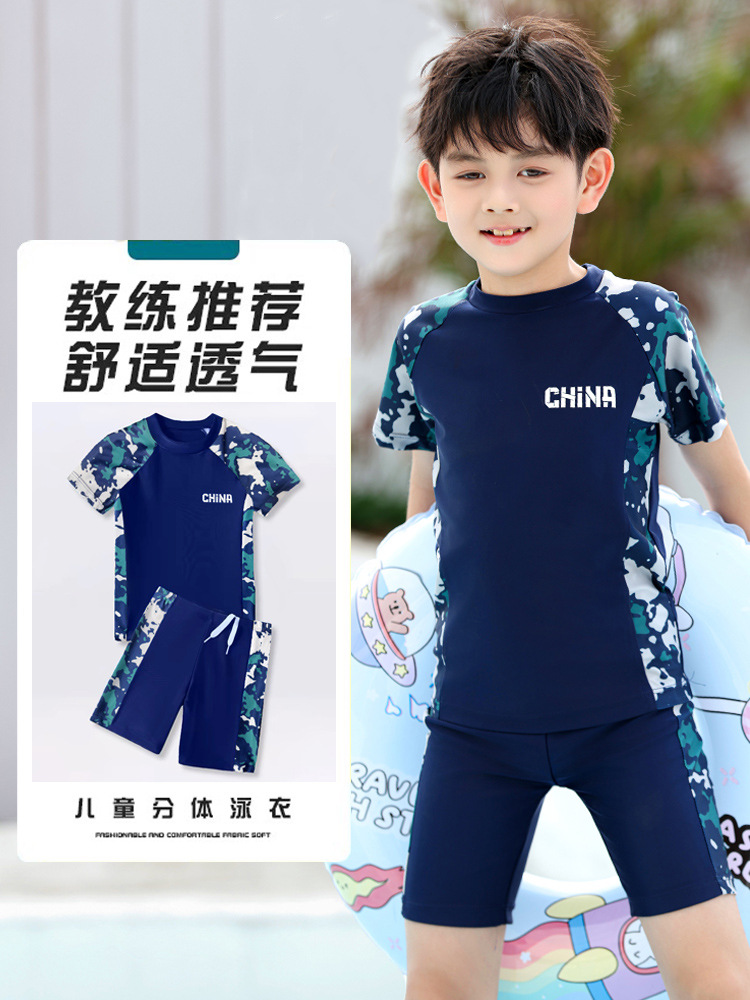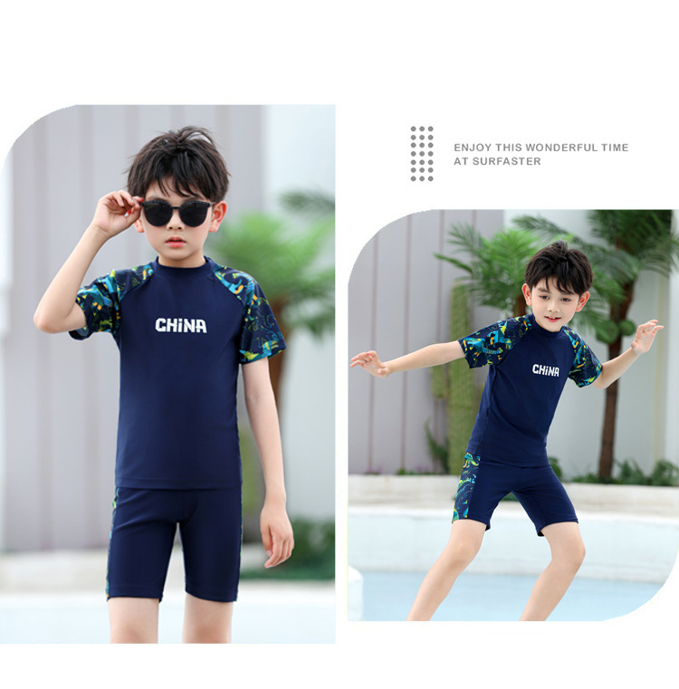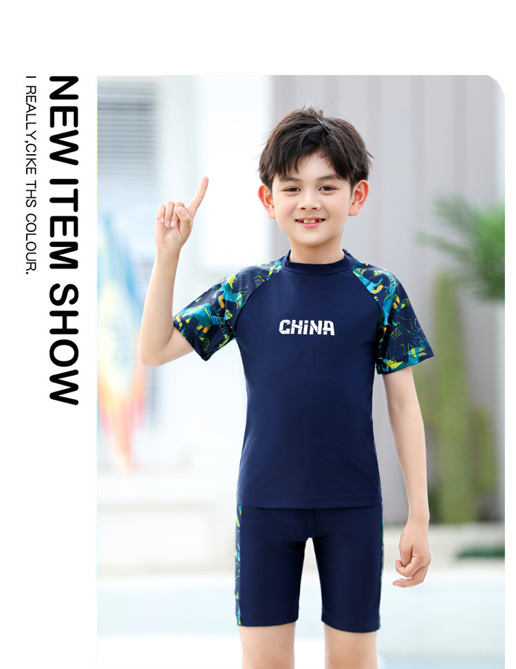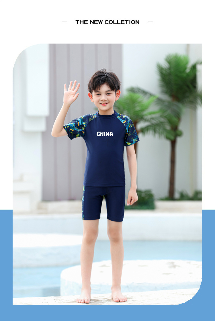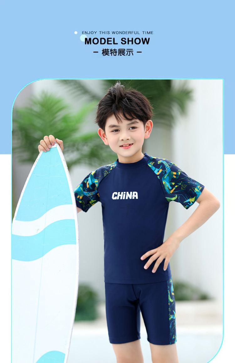 아동 수영복 및 수영복, 남아용 스플릿 속건성 새 남아용 수영복 및 수영복, 중대형 아동용 자외선 차단복 도매스토어 가기