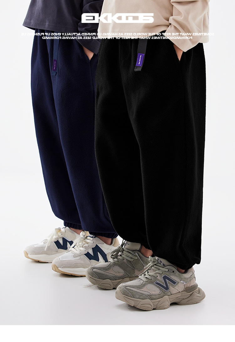 EK 아동복 솔리드 컬러 기본 소년 일본 캐주얼 바지 플러스 벨벳 두꺼운 중대형 아동 스타일 바지 트렌디 브랜드스토어 가기
