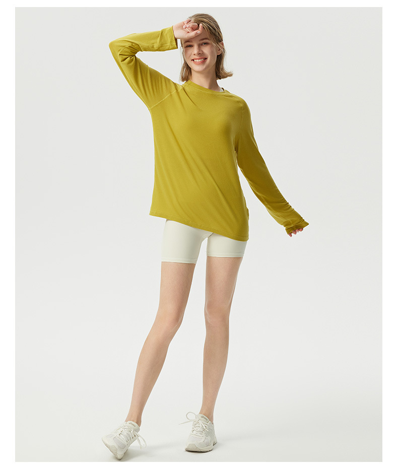 2025 가을 겨울 신상 여성용 요가복, 루즈핏 슬리밍 힙커버 피트니스복, 트레이닝 런닝탑, 긴팔 티셔츠