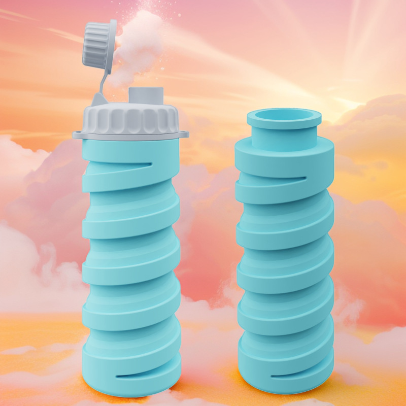 학생 스포츠 달리기 등산 여행 피트니스 휴대용 물 컵 텔레스코픽 어린이 물병을위한 국경 간 접이식 실리콘 물병
