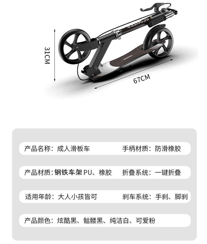 어린이 및 청소년 스쿠터, 성인용 2륜, 직장용 대형 휠, 접이식 캠퍼스 2륜 휴대용 스쿠터