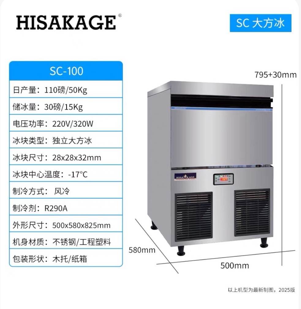 HISAKAGE Jiujing sc-100 공냉식 50kg ac-80x 대형 사각 얼음 제빙기 상업용 제조업체 도매