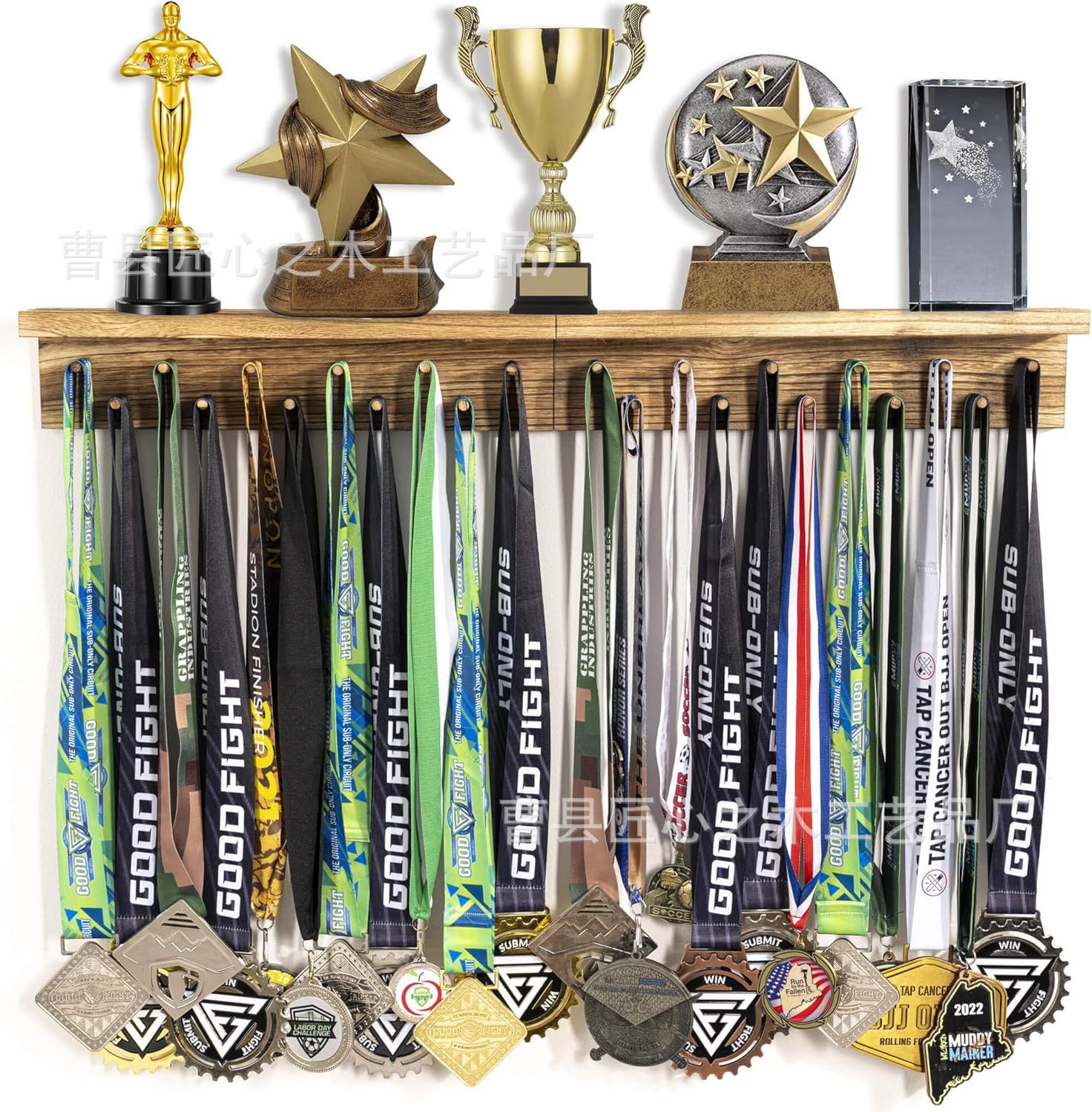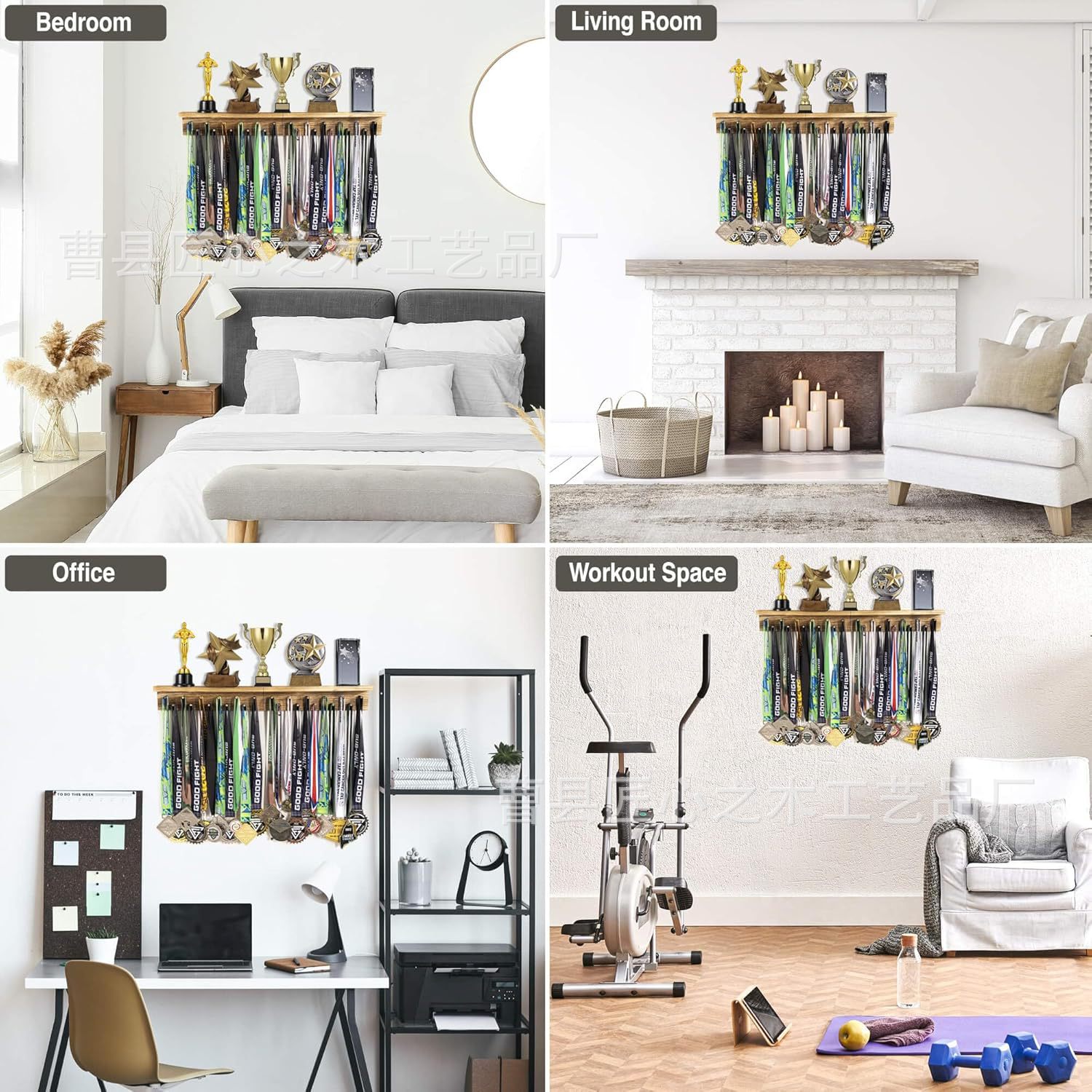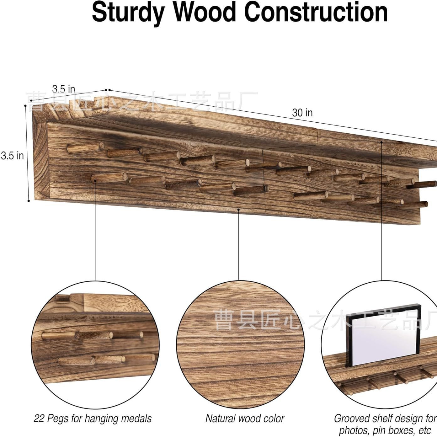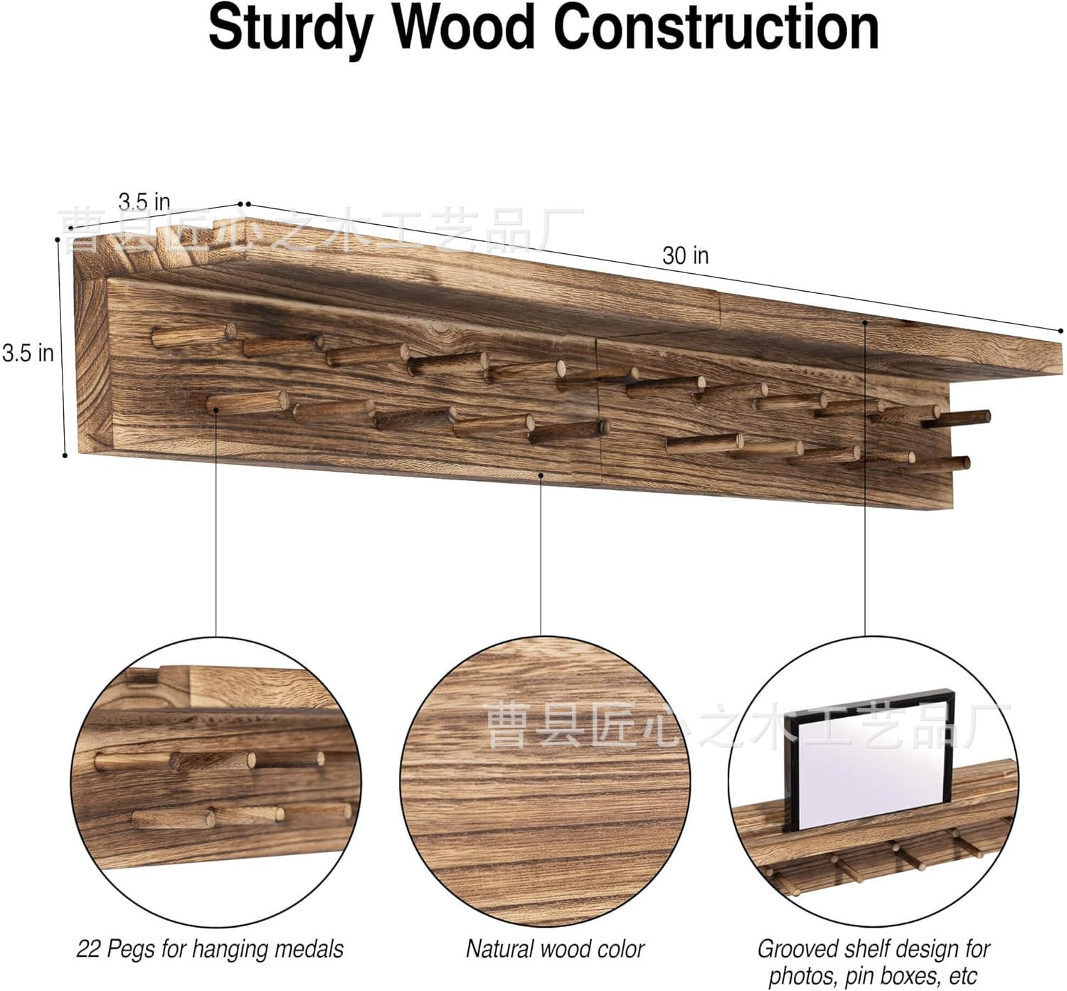 후크가있는 나무 벽걸이 형 선반 입구 문 메달 걸이 디스플레이 랙 나무 선반스토어 가기