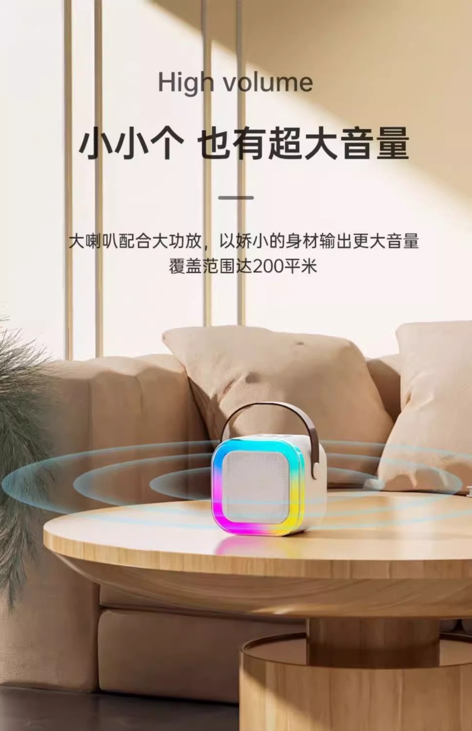 操作便捷性:开机即可使用,通过触控操作调节音量与切换音效,支持蓝牙快速连接,适合家庭聚会、亲子互动等场景。