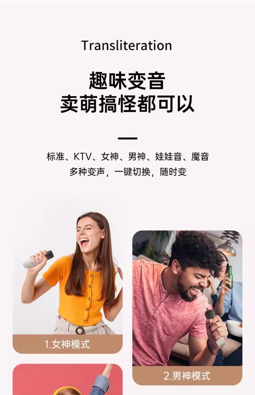 兼容性与功能扩展:兼容 全民K歌 、 酷狗K歌 等主流K歌APP,支持无线双麦互联对唱,提供监听功能及TF卡播放。
